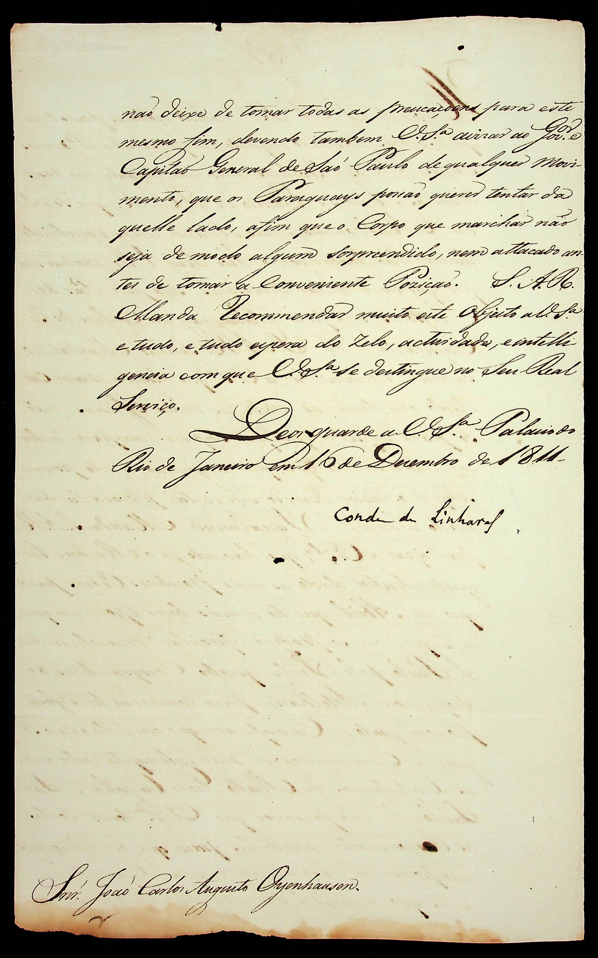 CARTA do Conde de Linhares [Rodrigo de Souza Coutinho] ao [Governador e Capitão-General da Capitania de Mato Grosso] João Carlos Augusto D’Oeynhausen e Gravemberg.