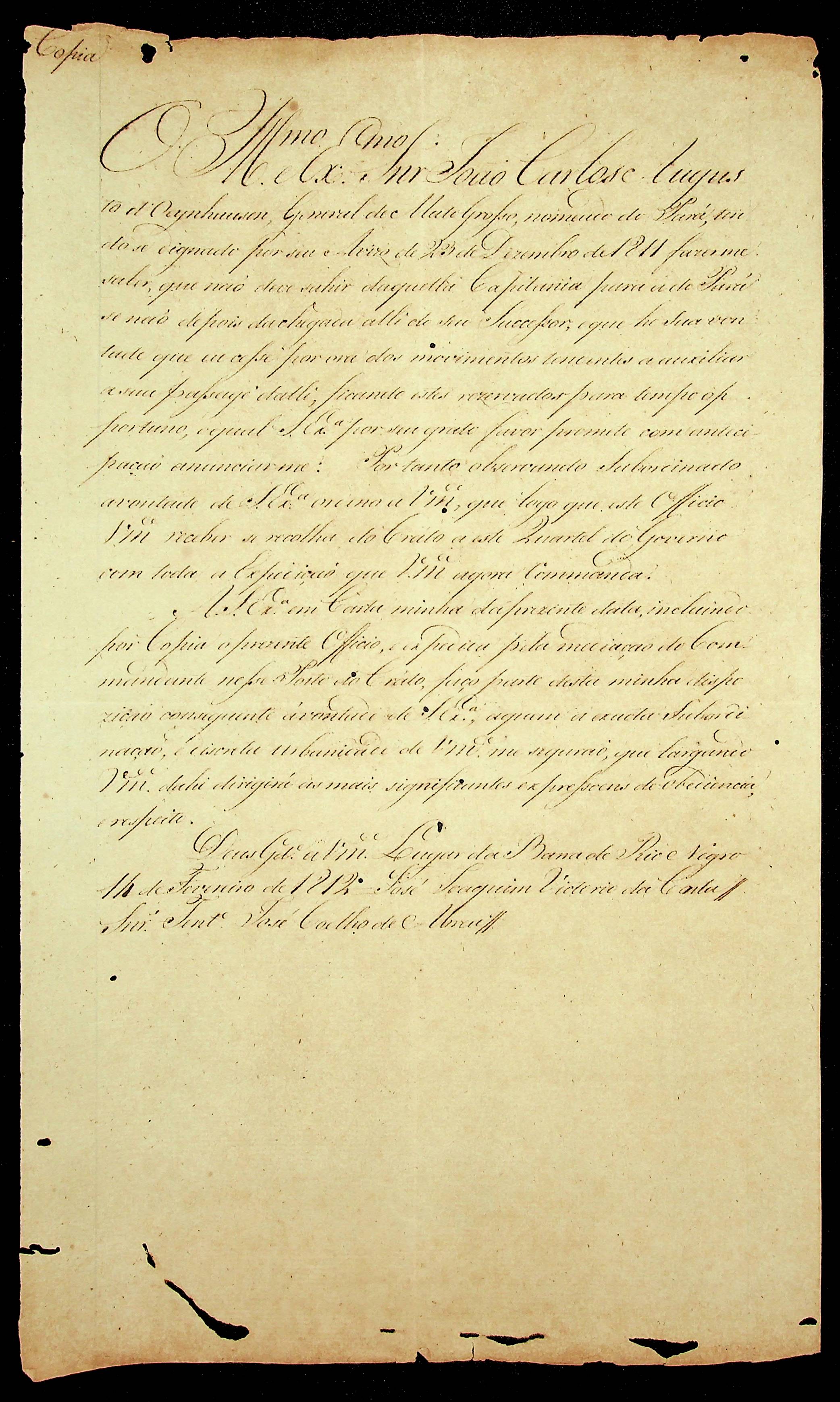 CARTA de José Joaquim Victorio da Costa ao Sr. Tenente José Coelho de Abreu.