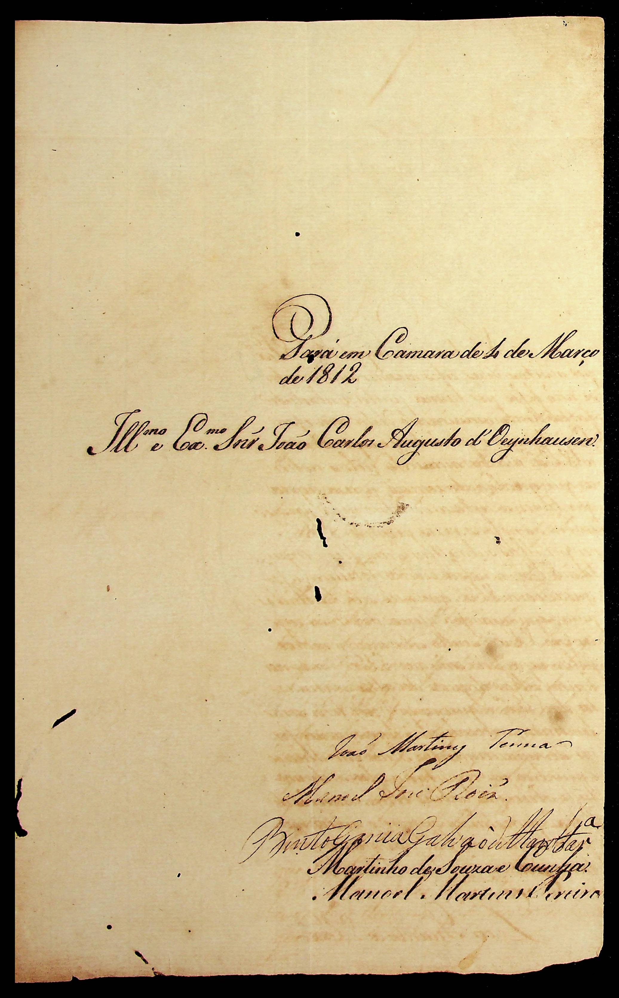 CARTA dos Vereadores da Câmara do Pará ao [Governador e Capitão-General da Capitania de Mato Grosso] João Carlos Augusto D’Oeynhausen e Gravemberg.