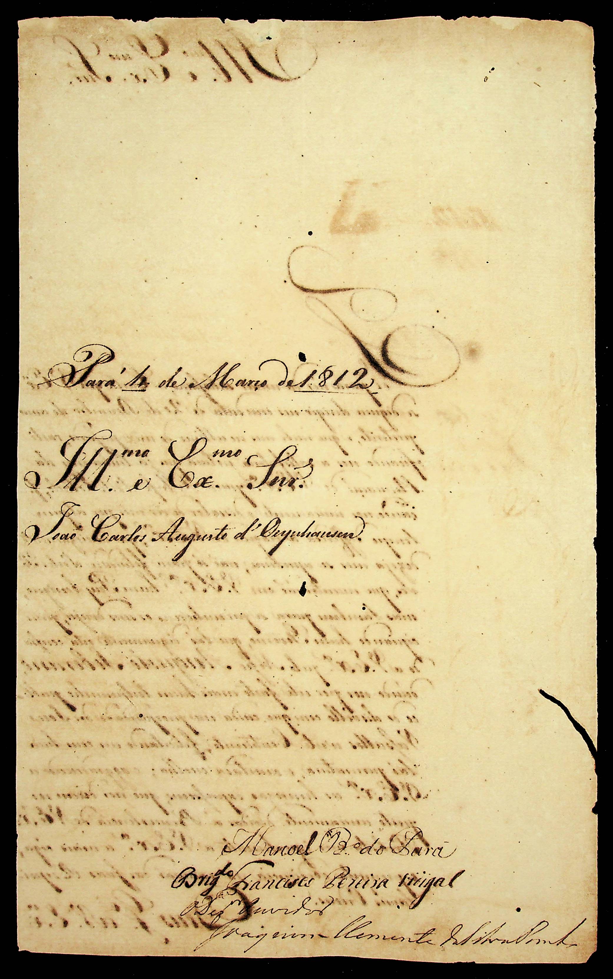 CARTA de Manoel [...] do Pará, Francisco Pereira Vidigal e Desembargador Ouvidor Joaquim Clemente da Silva [...] ao [Governador e Capitão-General da Capitania de Mato Grosso] João Carlos Augusto D’Oeynhausen e Gravemberg.