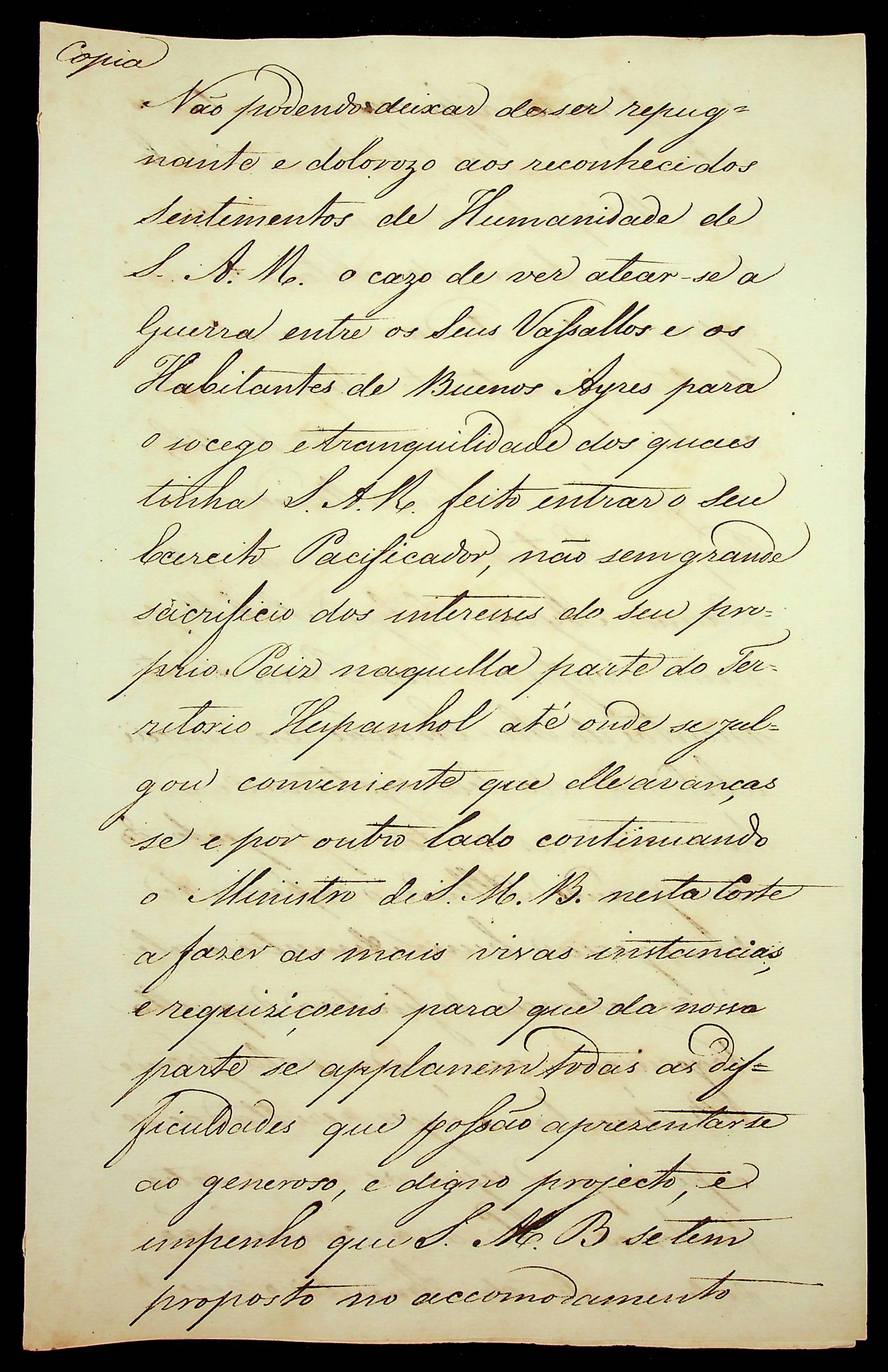 CARTA (cópia) do Conde das [Galveias] ao Tenente Coronel João Rademaker.