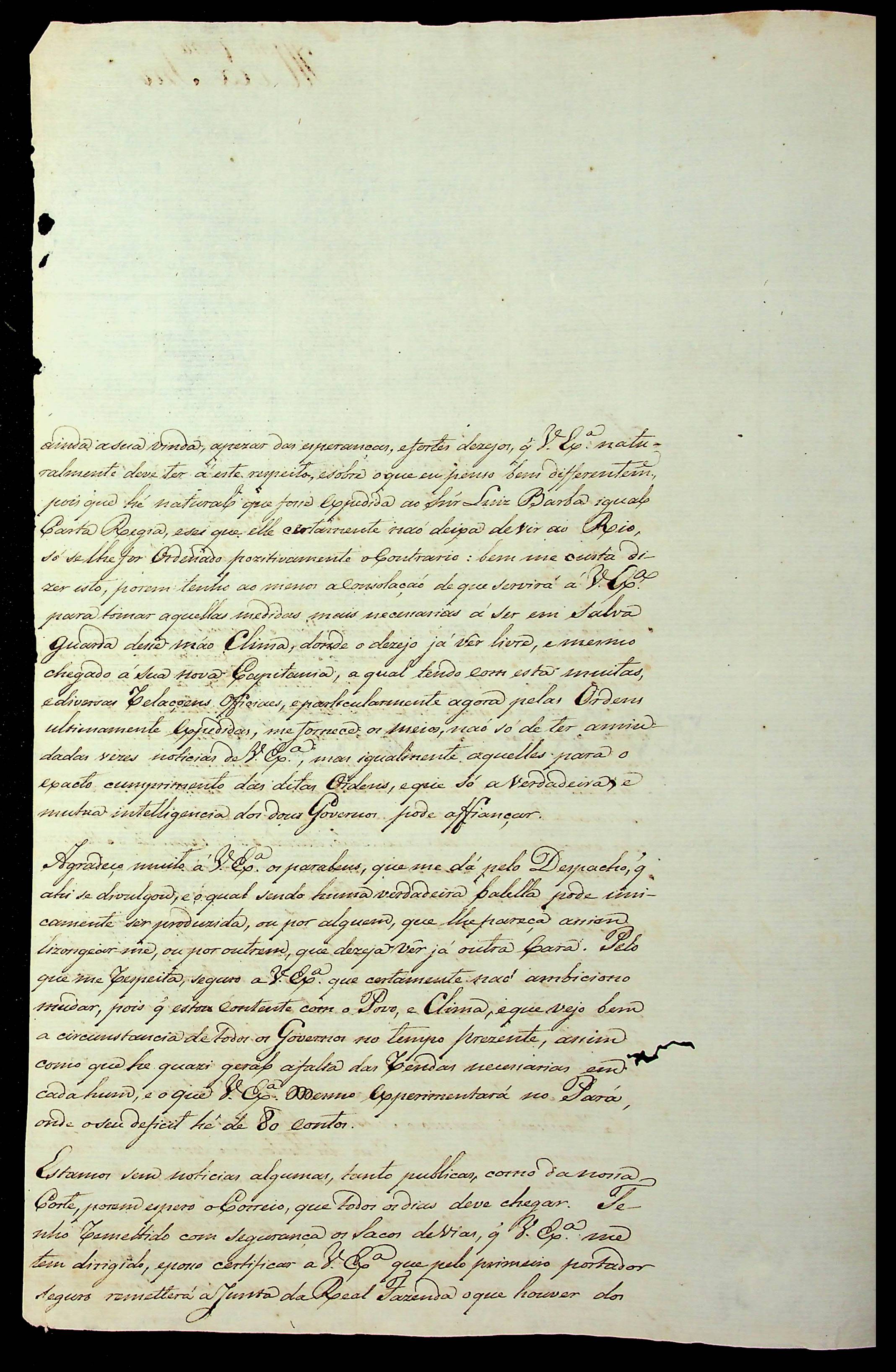 CARTA do [Governador e Capitão-General da Capitania de Goiás] Fernando Delgado Freire de Castilho ao [Governador e Capitão-General da Capitania de Mato Grosso] João Carlos Augusto D’Oeynhausen e Gravemberg.