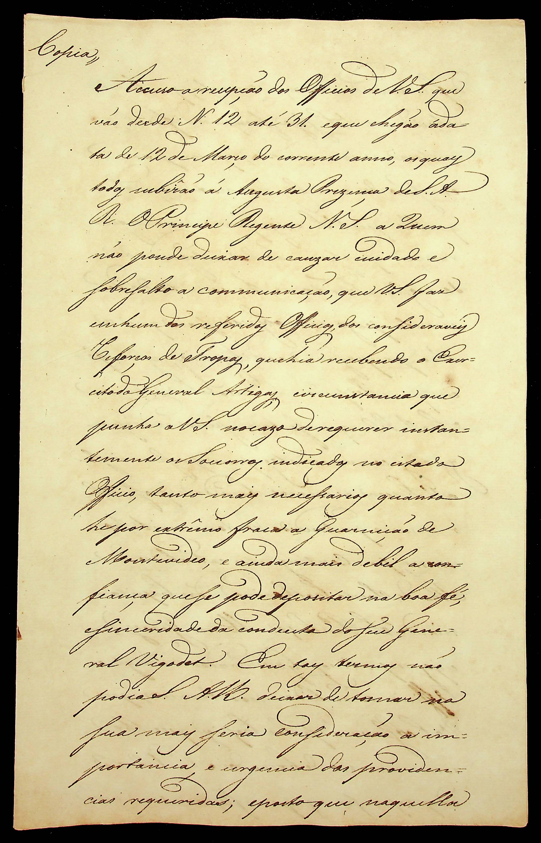 CARTA (cópia) do Conde das Galveas ao General Diogo de Souza.