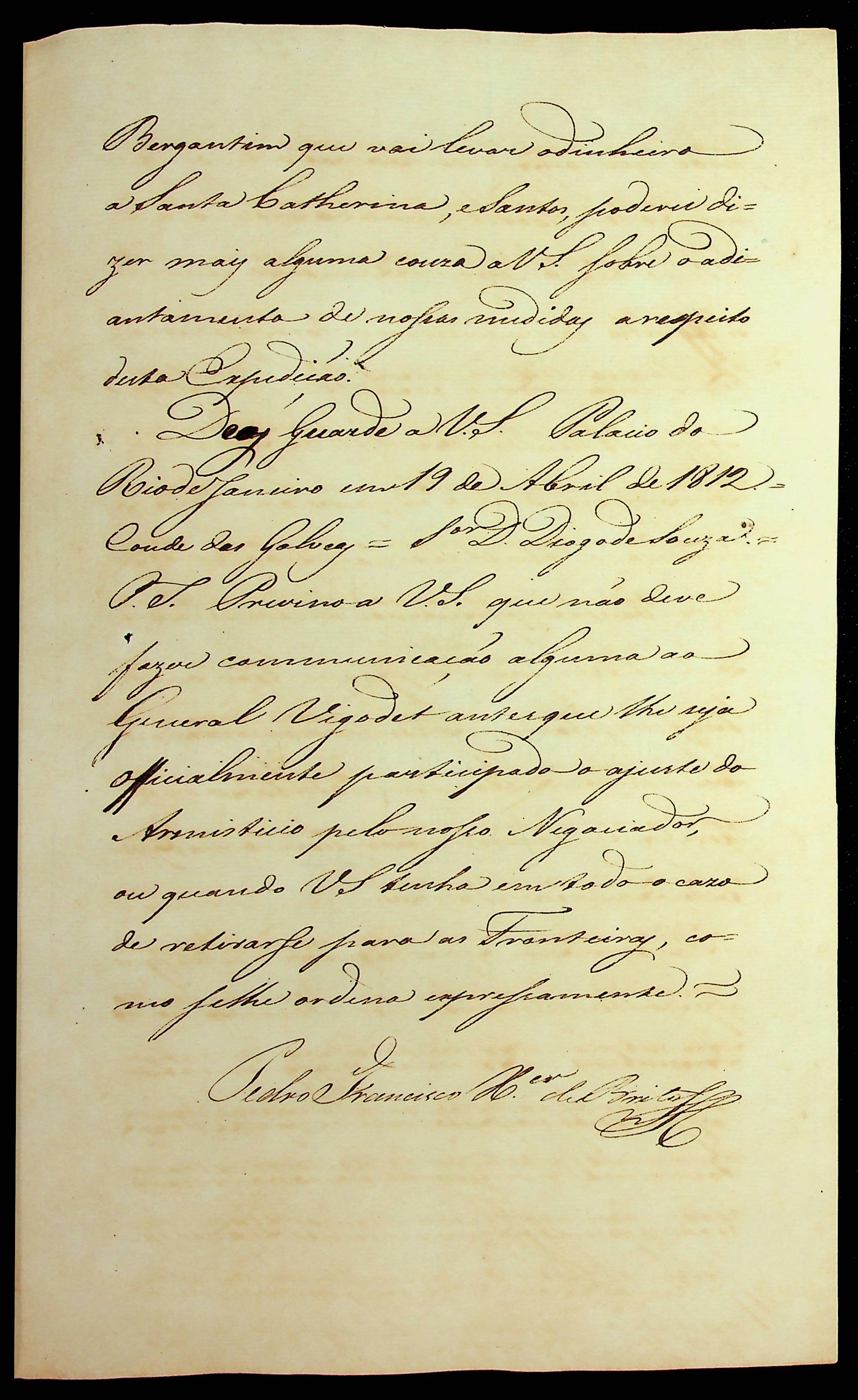 CARTA (cópia) do Conde das Galveas ao General Diogo de Souza.