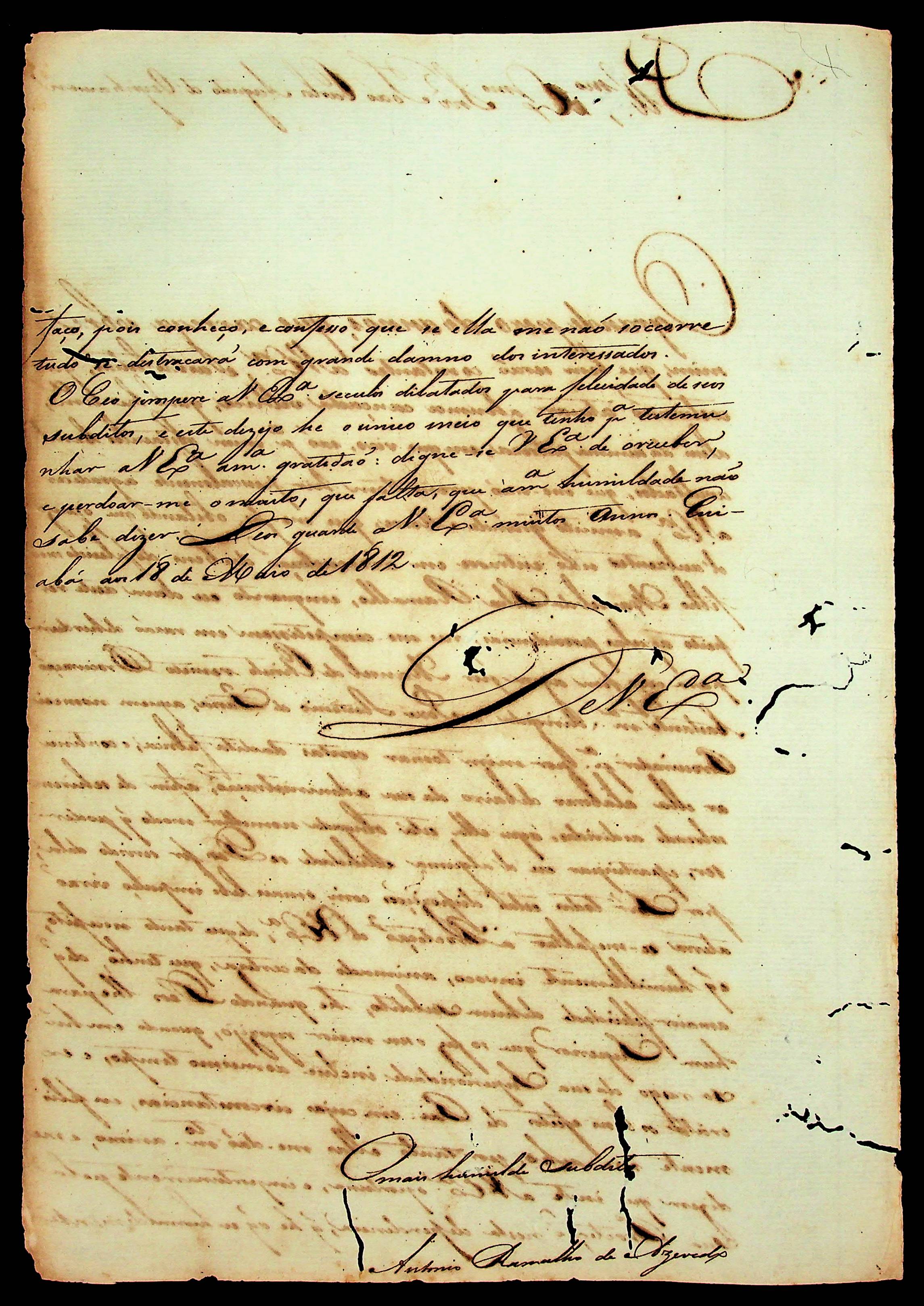CARTA de Antônio Ramalho de Azevedo ao [Governador e Capitão-General da Capitania de Mato Grosso João Carlos Augusto D’Oeynhausen e Gravemberg].