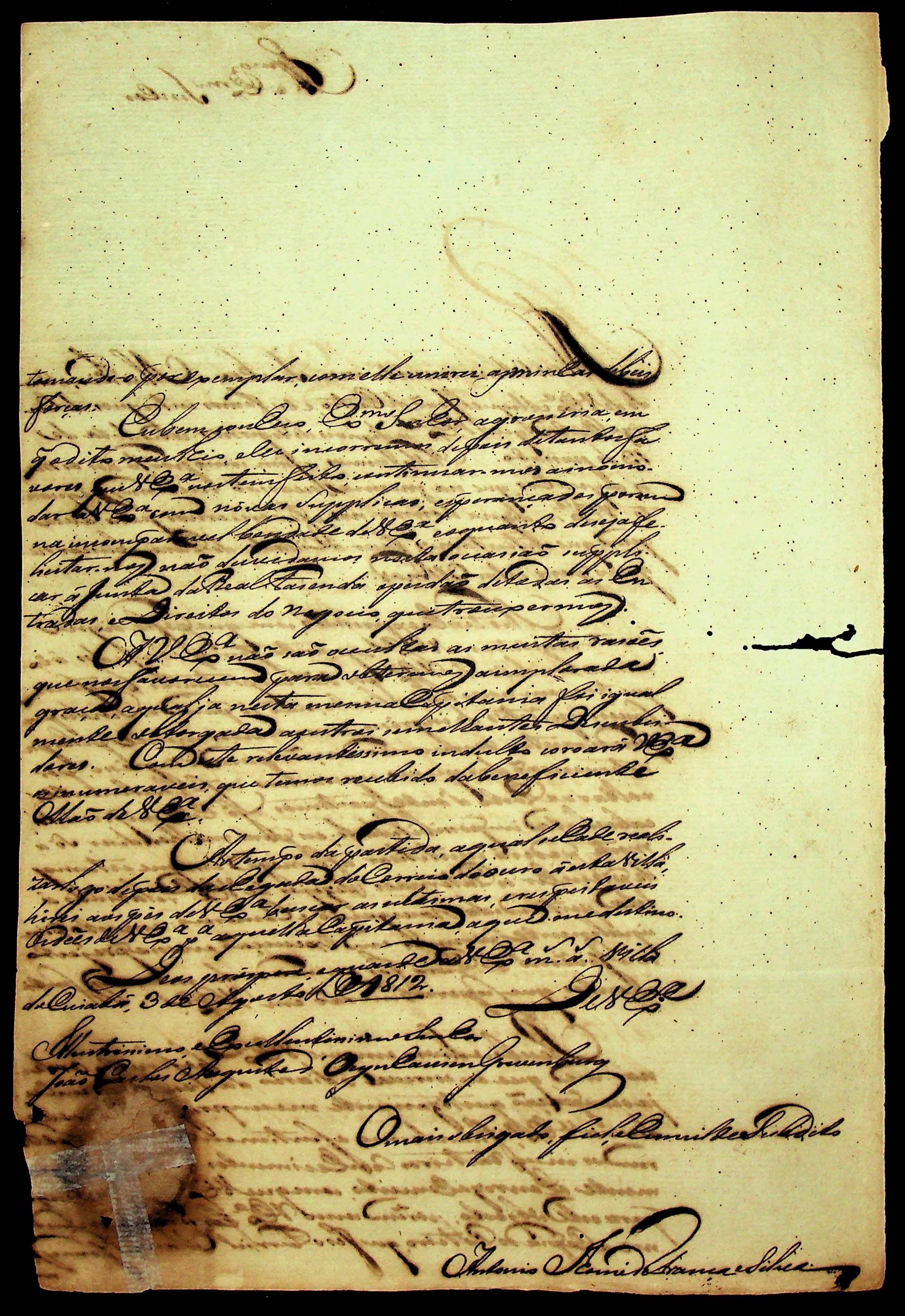 CARTA de Antônio [Thomé] de França e Silva ao [Governador e Capitão-General da Capitania de Mato Grosso] João Carlos Augusto D’Oeynhausen e Gravemberg.