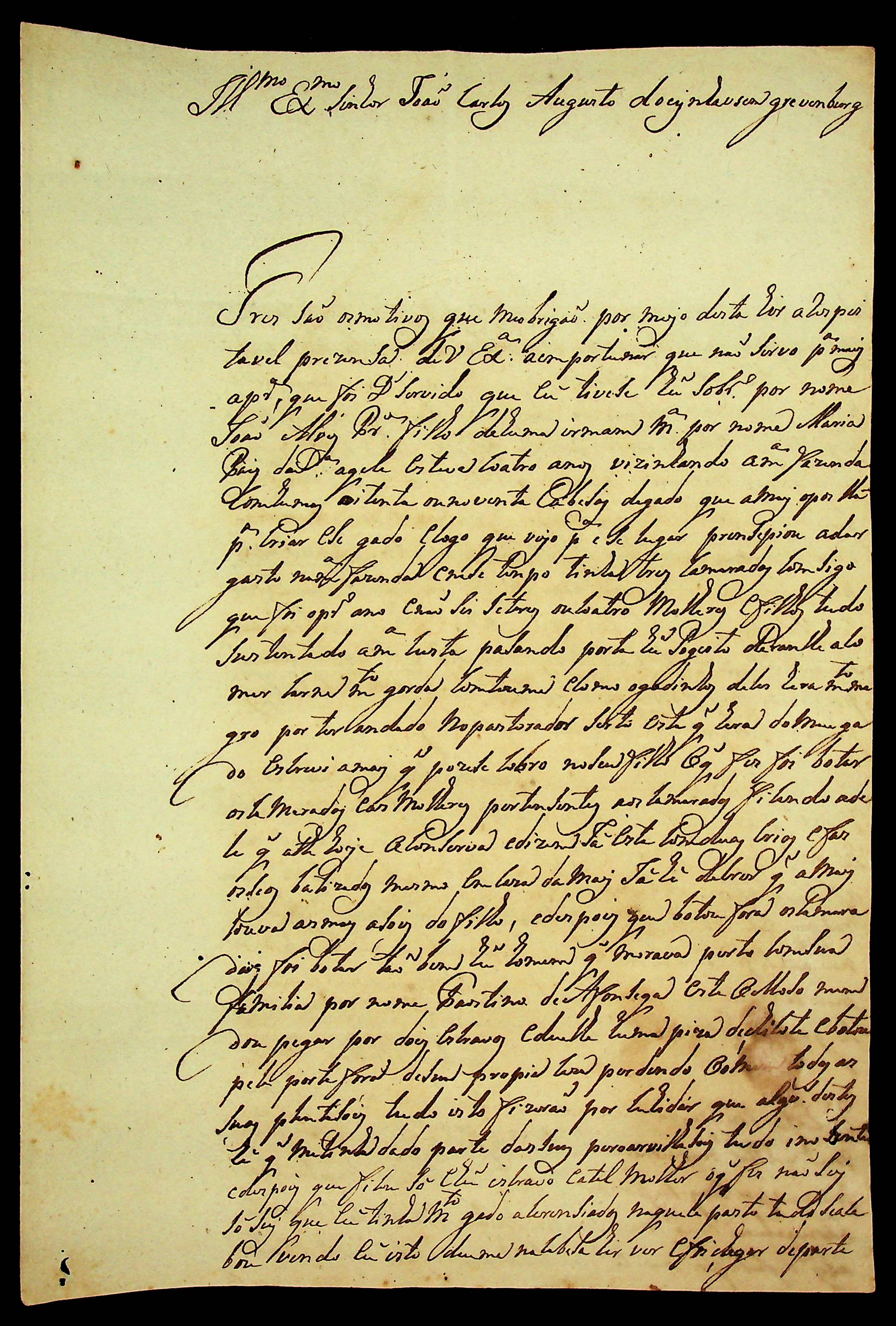 CARTA de Ignácio de Souza Oliveira ao [Governador e Capitão-General da Capitania de Mato Grosso João Carlos Augusto D’Oeynhausen e Gravemberg].