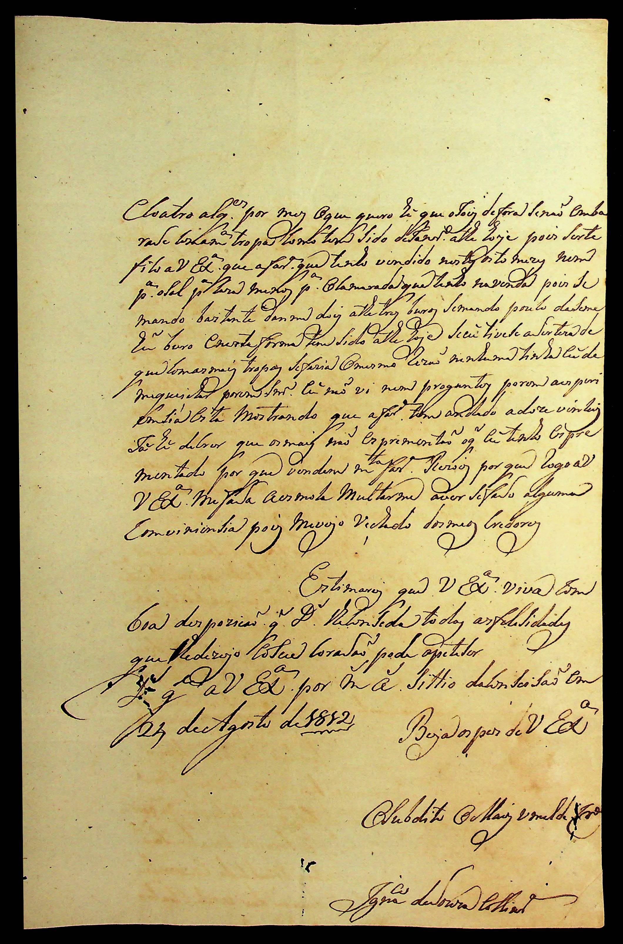 CARTA de Ignácio de Souza Oliveira ao [Governador e Capitão-General da Capitania de Mato Grosso João Carlos Augusto D’Oeynhausen e Gravemberg].