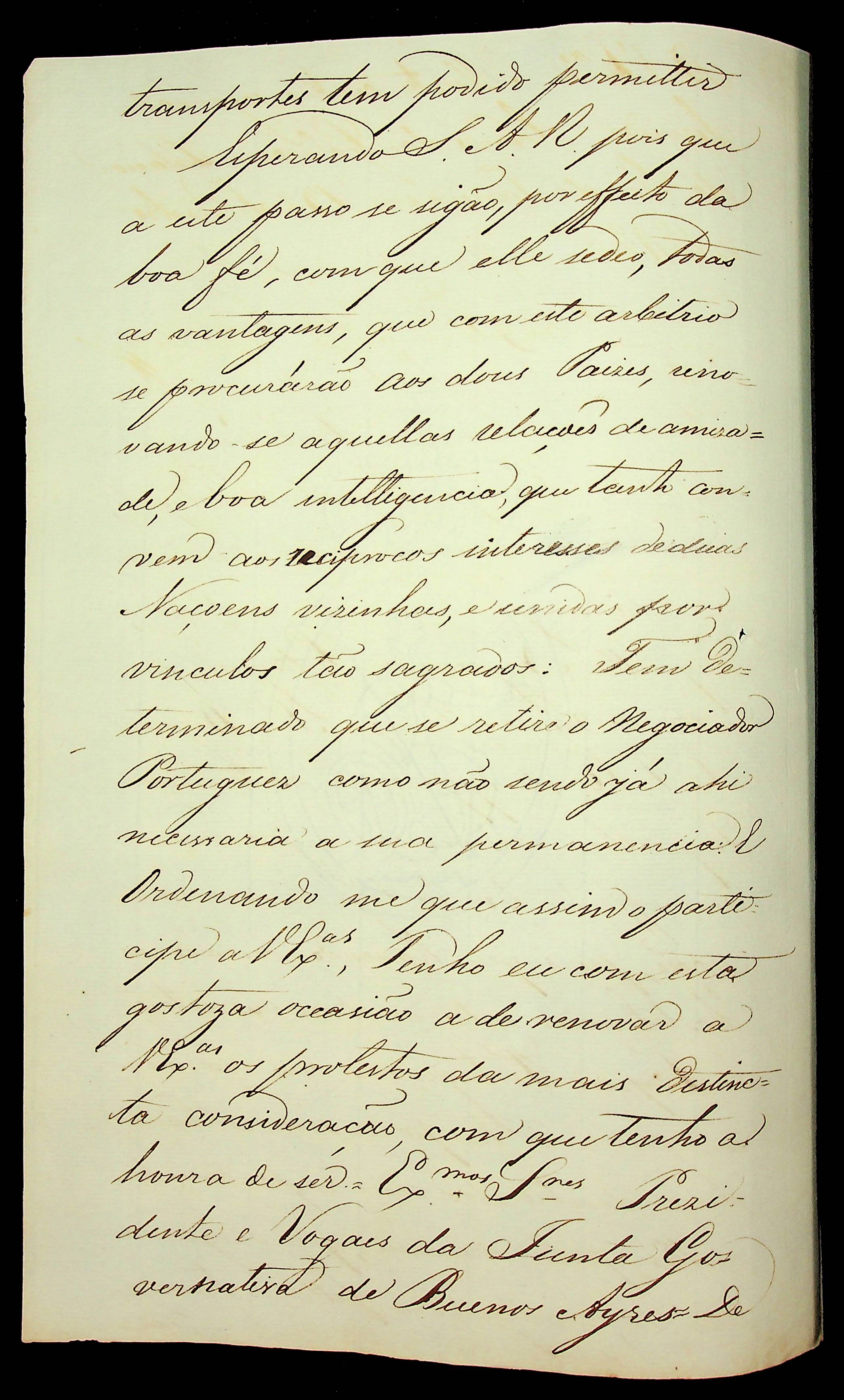 CARTA do Conde das Galveas aos Senhores Presidentes da Junta Governativa de Buenos Aires.