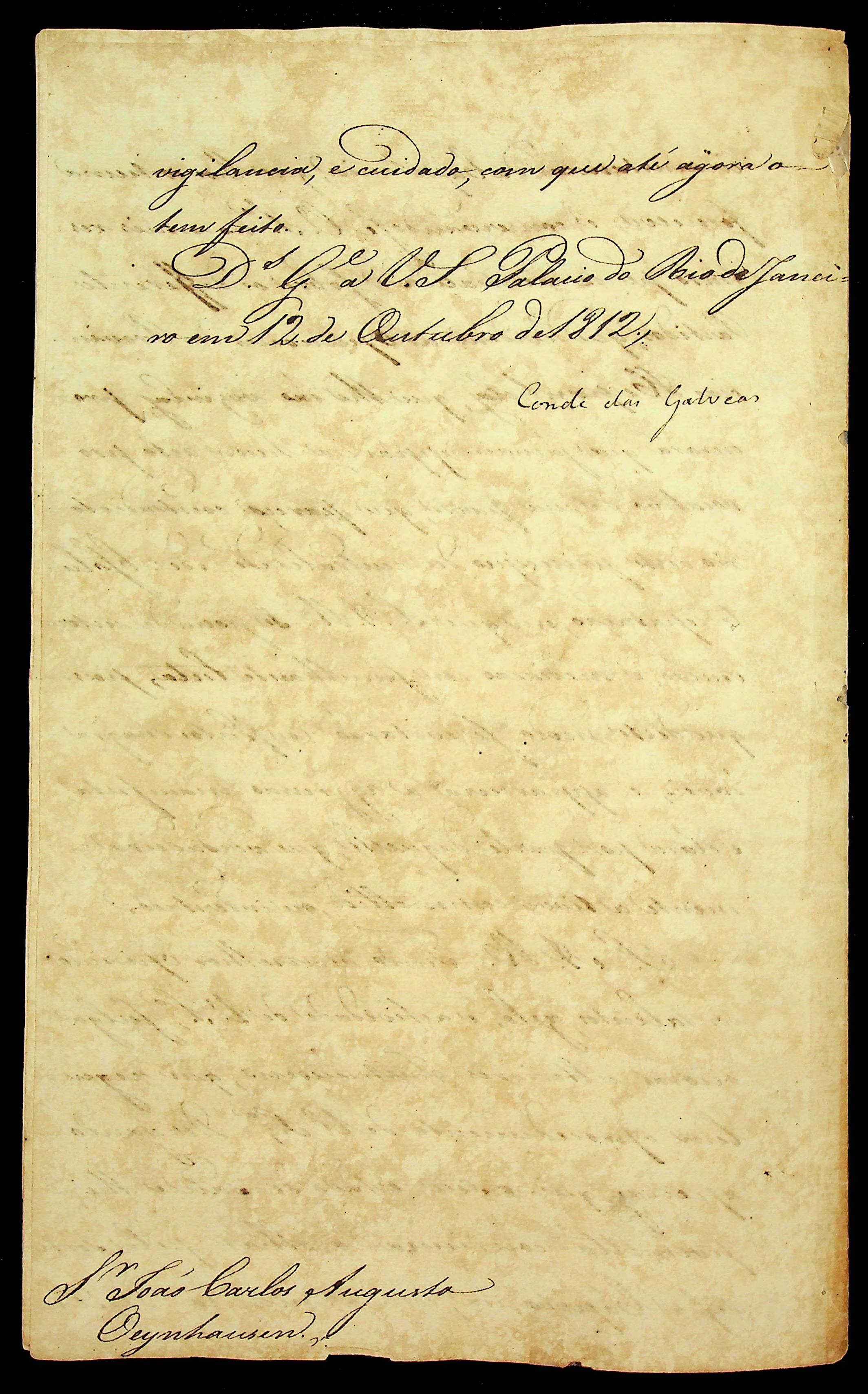 CARTA do Conde das Galveas ao [Governador e Capitão-General da Capitania de Mato Grosso] João Carlos Augusto D’Oeynhausen e Gravemberg.