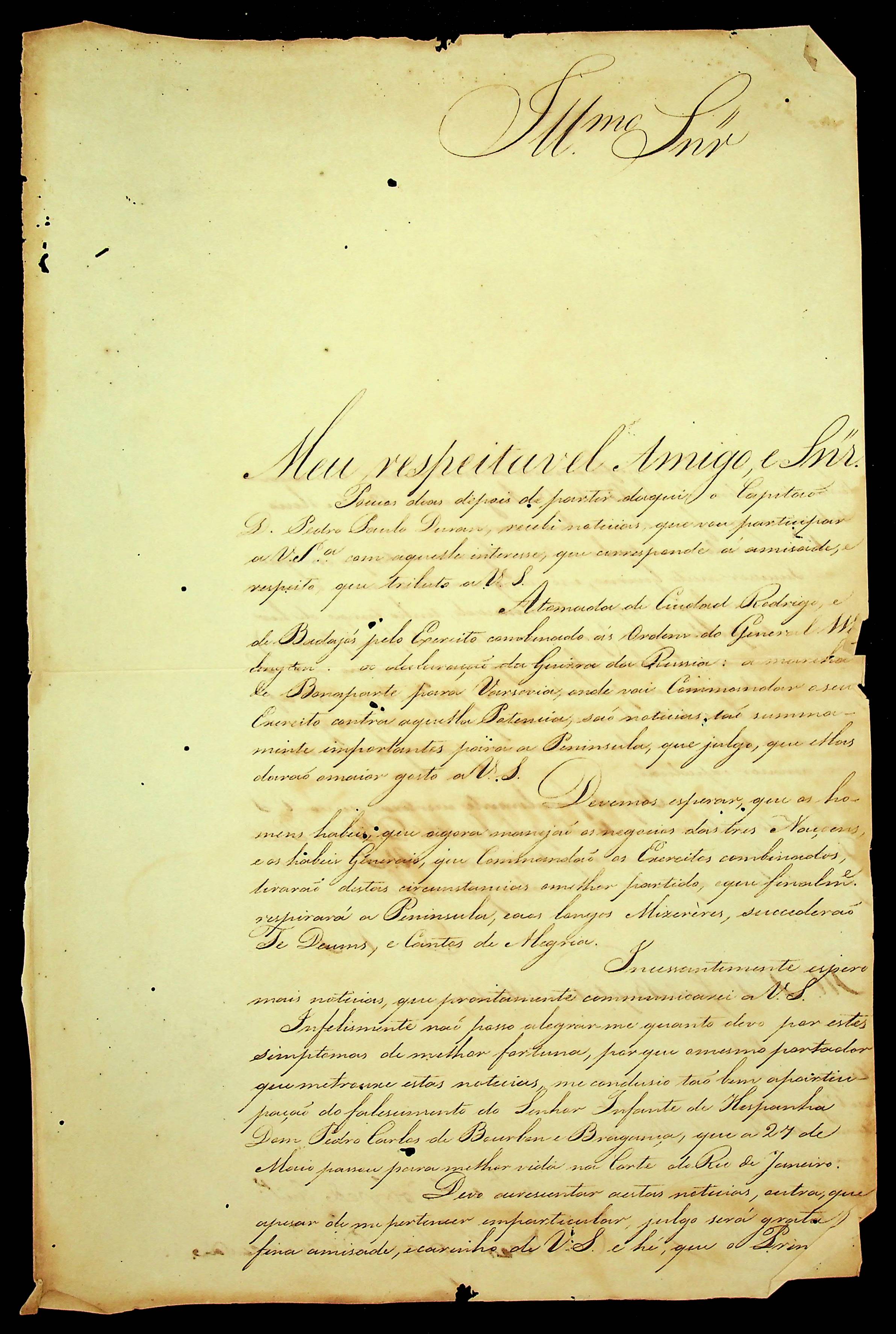CARTA do [Governador e Capitão-General da Capitania de Mato Grosso] João Carlos Augusto D’Oeynhausen e Gravemberg ao [Governador Político e Militar da Província de Chiquitos] João Baptista d´Altolaguirre.