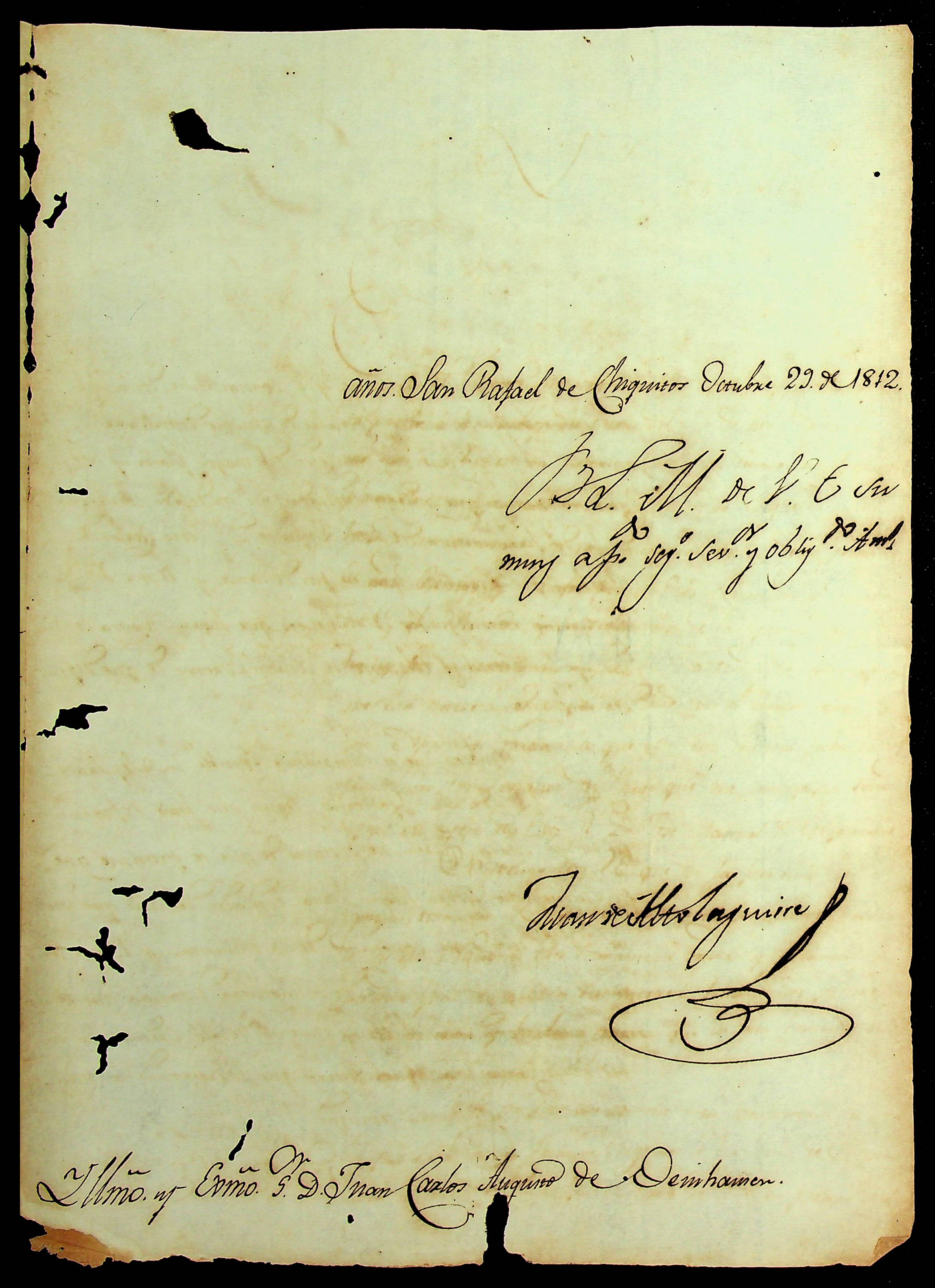 CARTA do [Governador de Chiquitos] João Baptista de Altolaguirre ao [Governador e Capitão-General da Capitania de Mato Grosso] João Carlos Augusto D’Oeynhausen e Gravemberg.