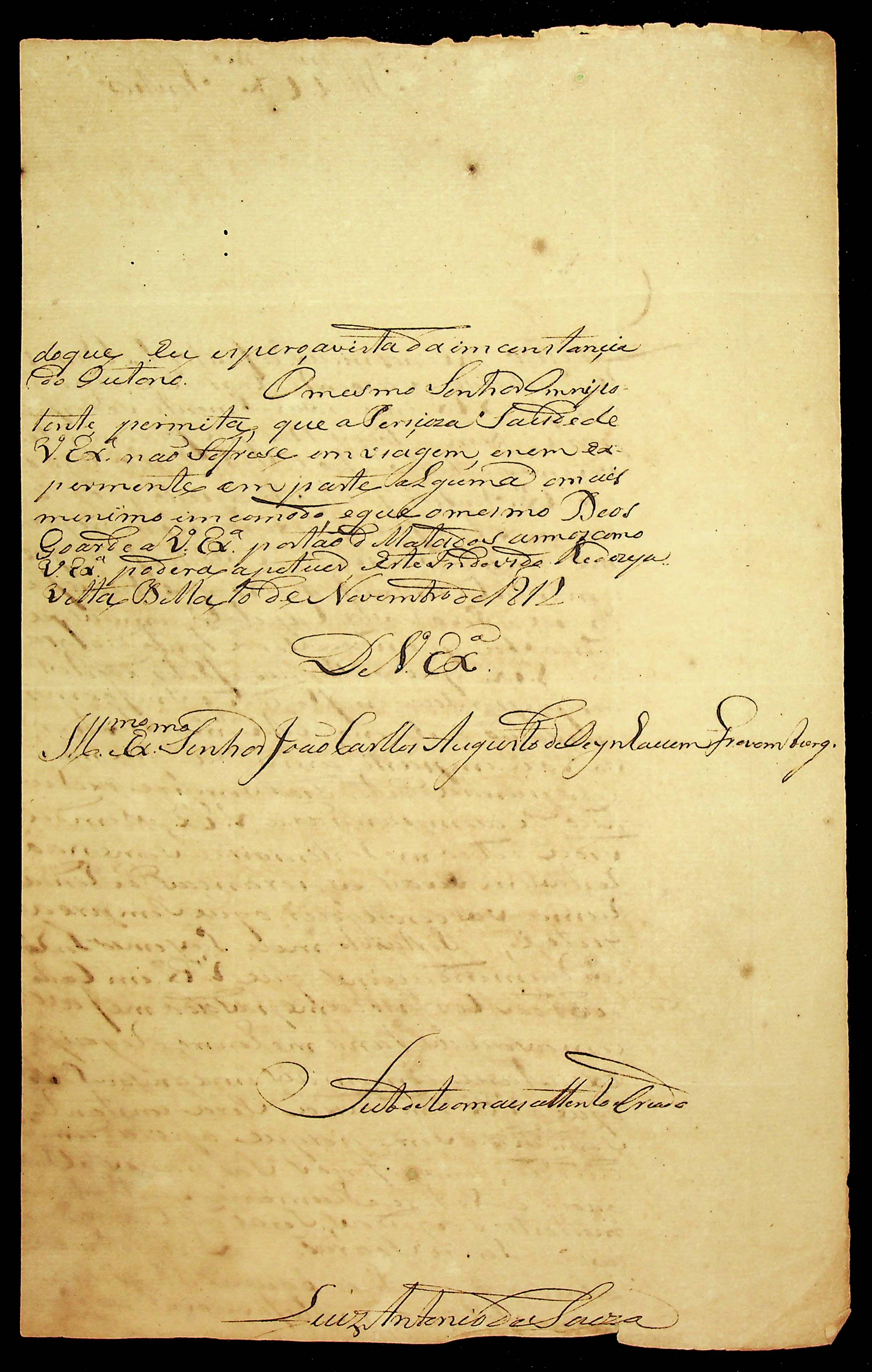 CARTA de Luís Antônio de Souza ao [Governador e Capitão-General da Capitania de Mato Grosso] João Carlos Augusto D’Oeynhausen e Gravemberg.