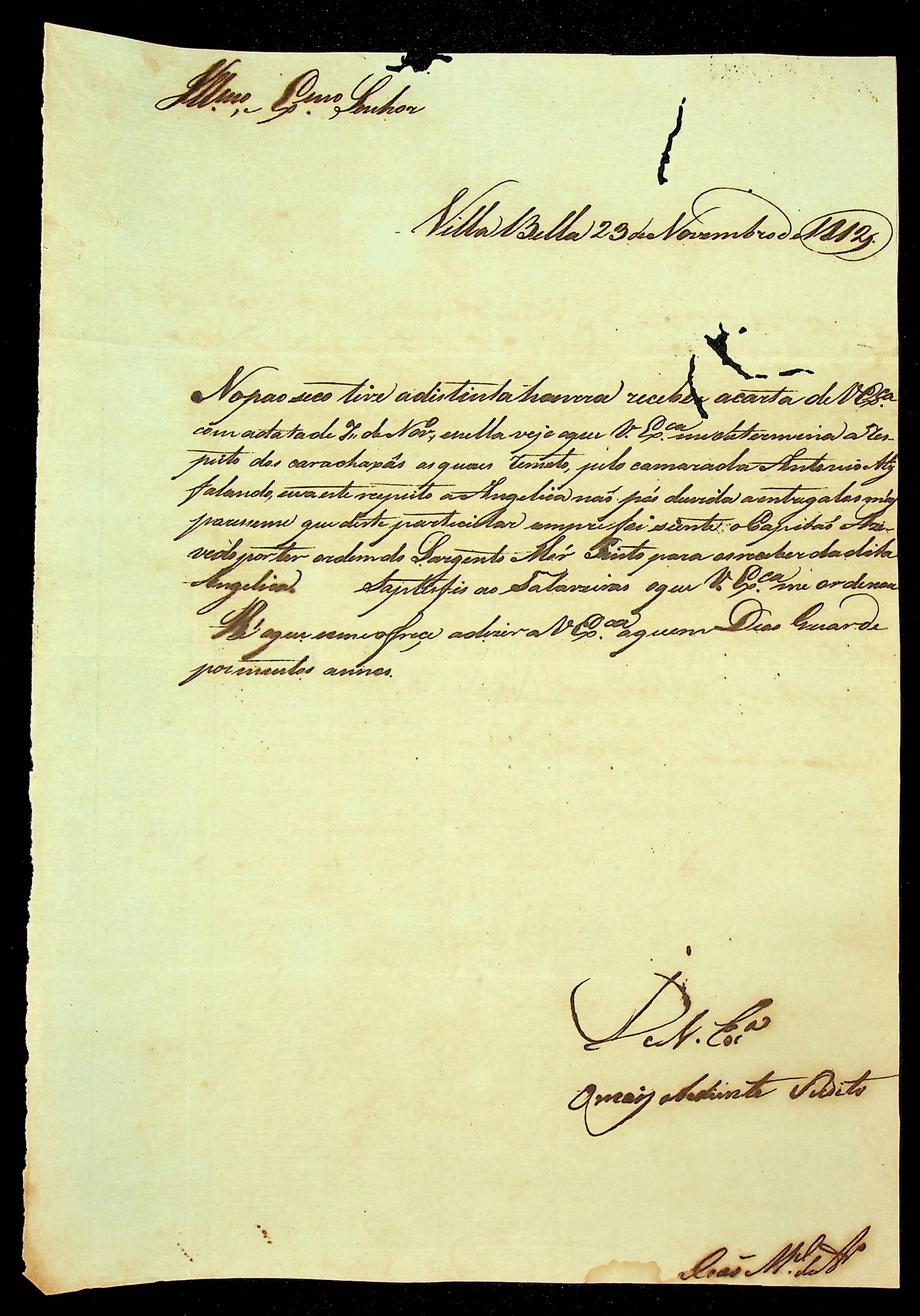 CARTA de João Manoel Araújo ao [Governador e Capitão-General da Capitania de Mato Grosso João Carlos Augusto de Oeynhausen e Granvemberg].