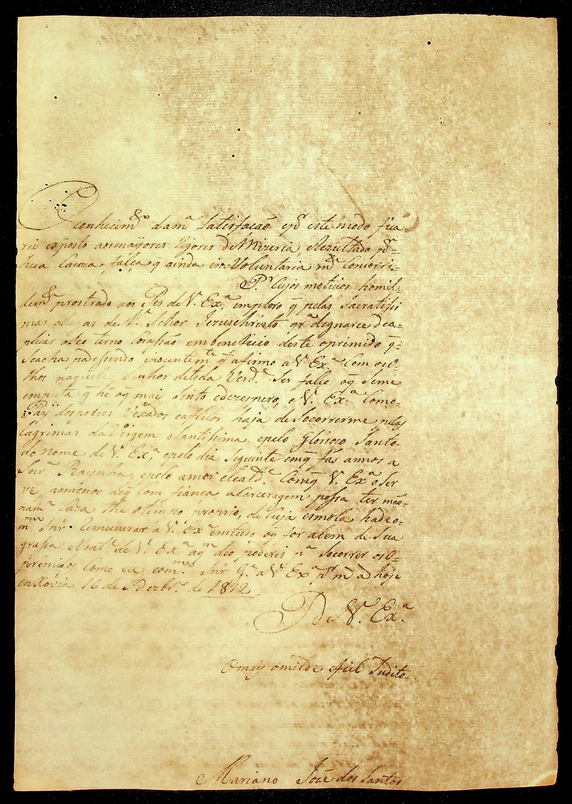 CARTA Mariano José dos Santos ao [Governador e Capitão-General da Capitania de Mato Grosso João Carlos Augusto D’Oeynhausen e Gravemberg].