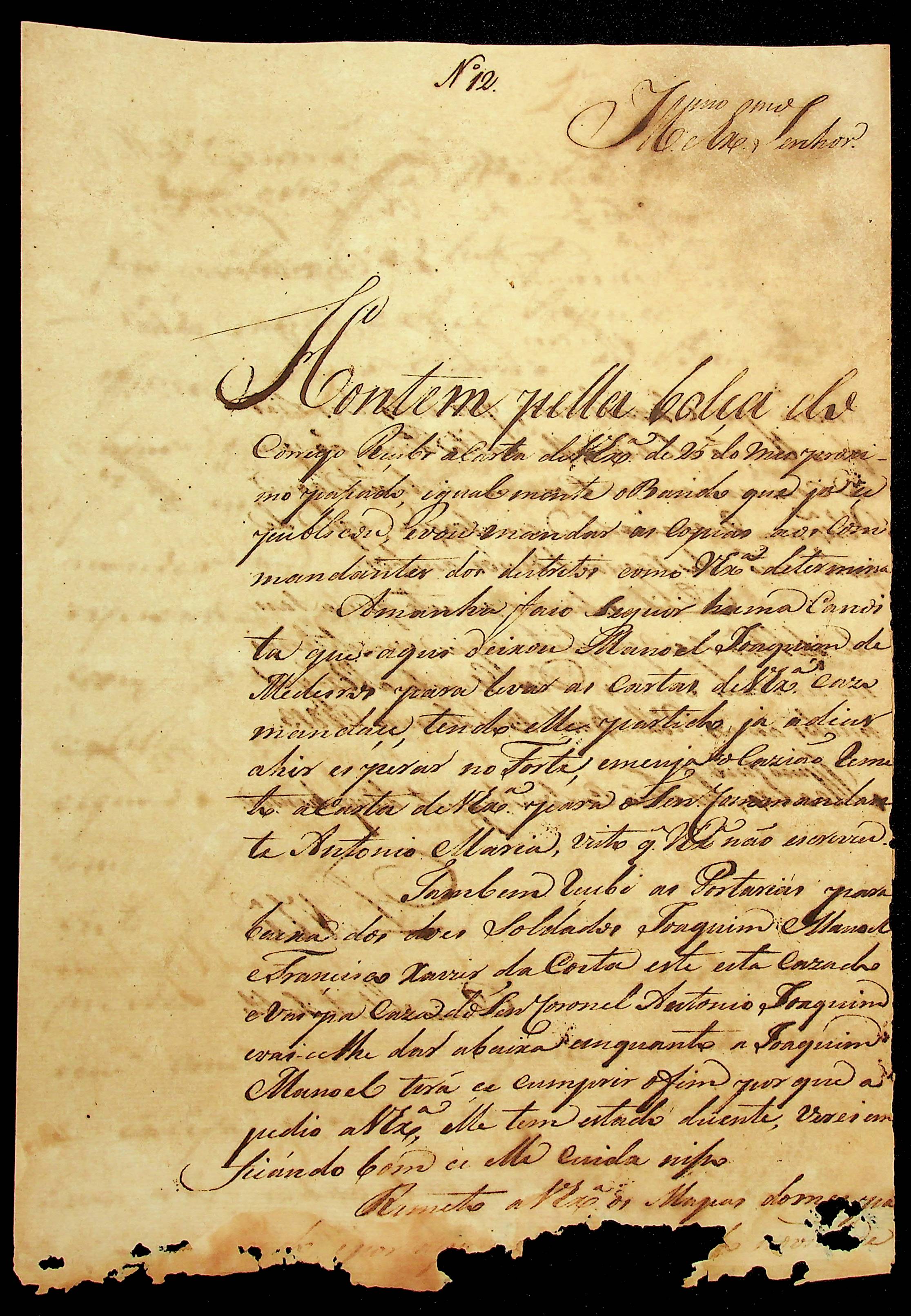 CARTA de [...] ao [Governador e Capitão-General da Capitania de Mato Grosso] João Carlos Augusto D’ Oeynhausen e Gravemberg.