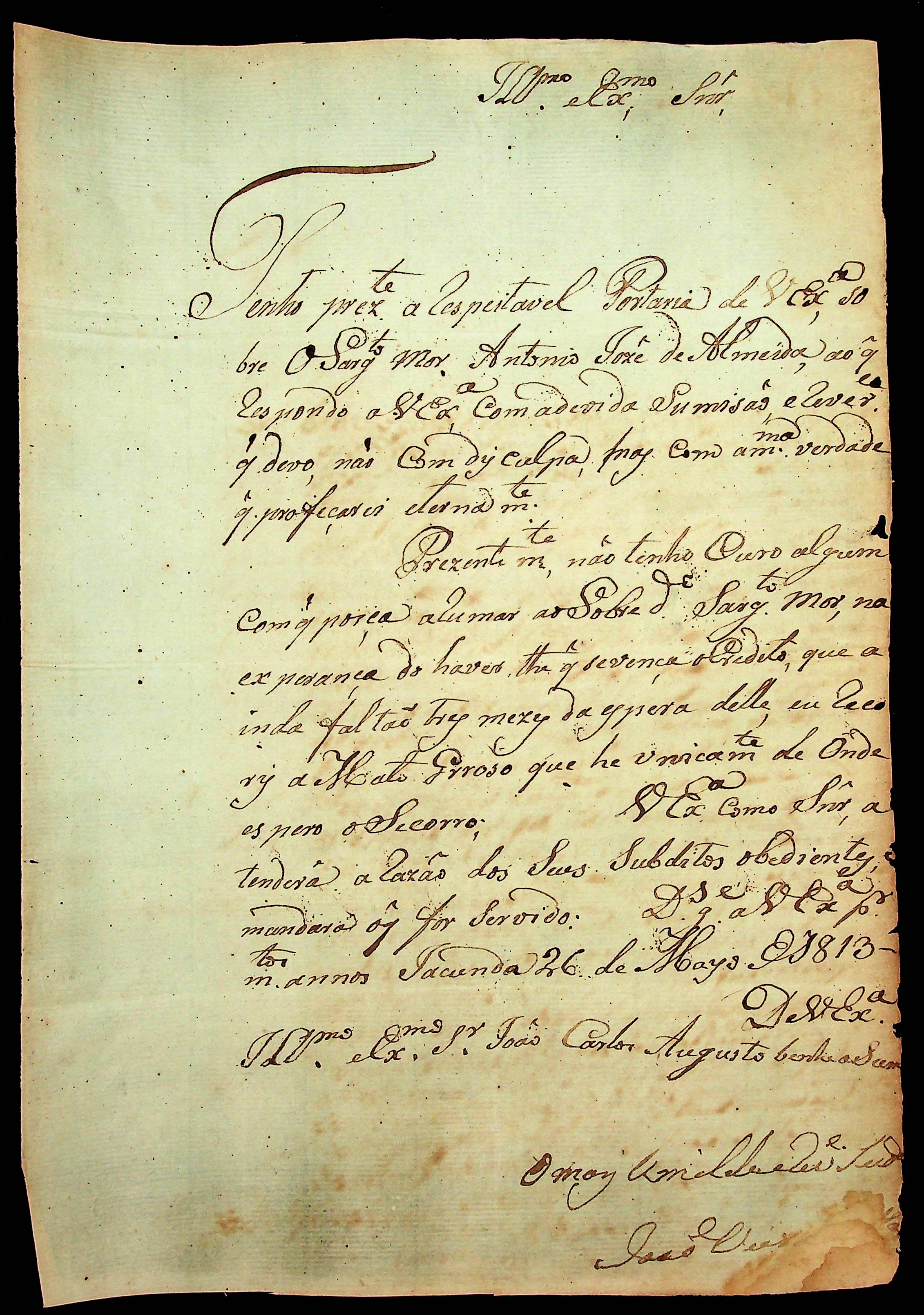 CARTA de João Vieira... ao [Governador e Capitão-General da Capitania de Mato Grosso] João Carlos Augusto D’ Oeynhausen e Gravemberg.