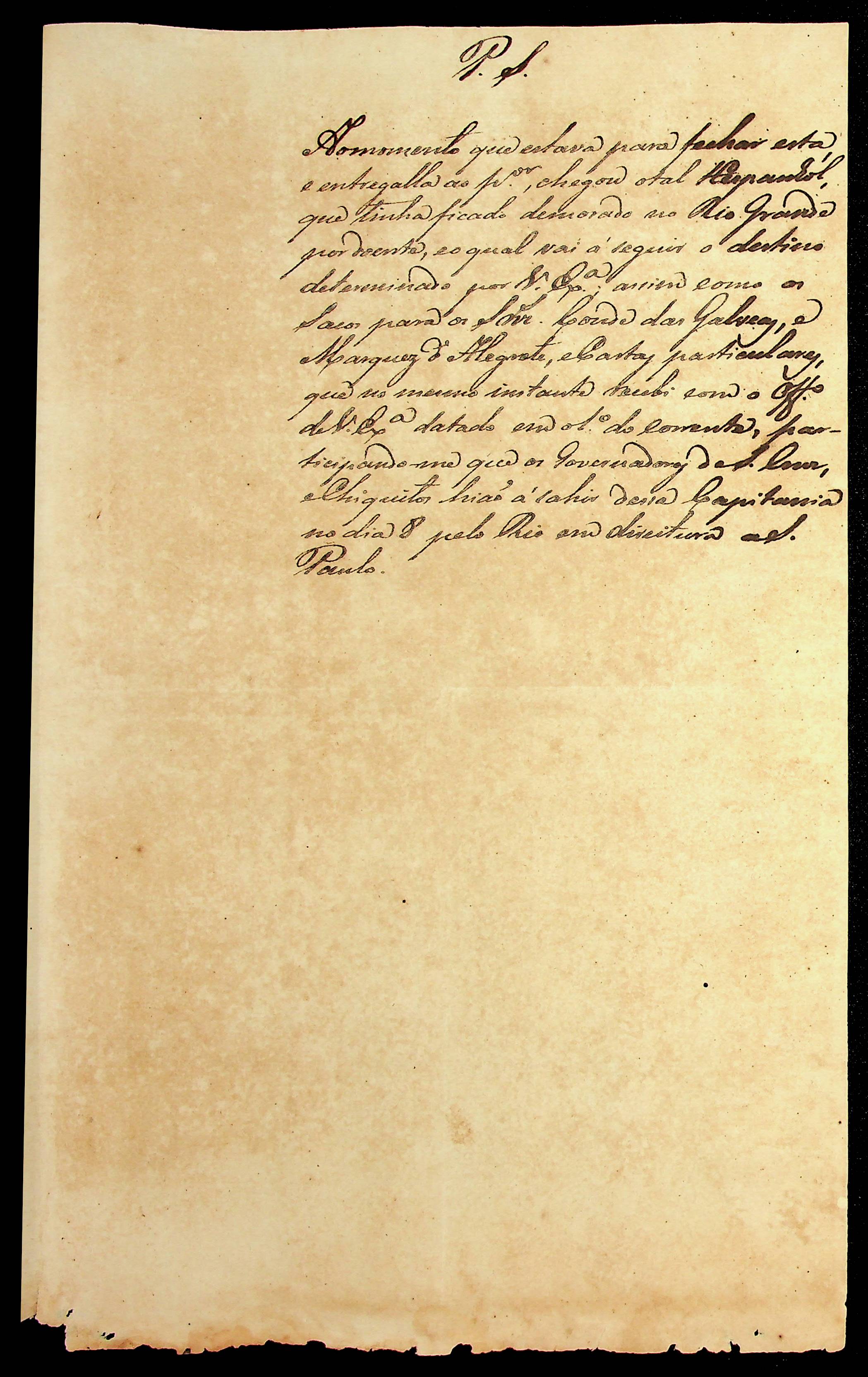 CARTA do [Governador e Capitão-General de Goiás Fernando Delgado Freire de Castilho] ao [Governador e Capitão-General da Capitania de Mato Grosso] João Carlos Augusto D’Oeynhausen e Gravemberg.