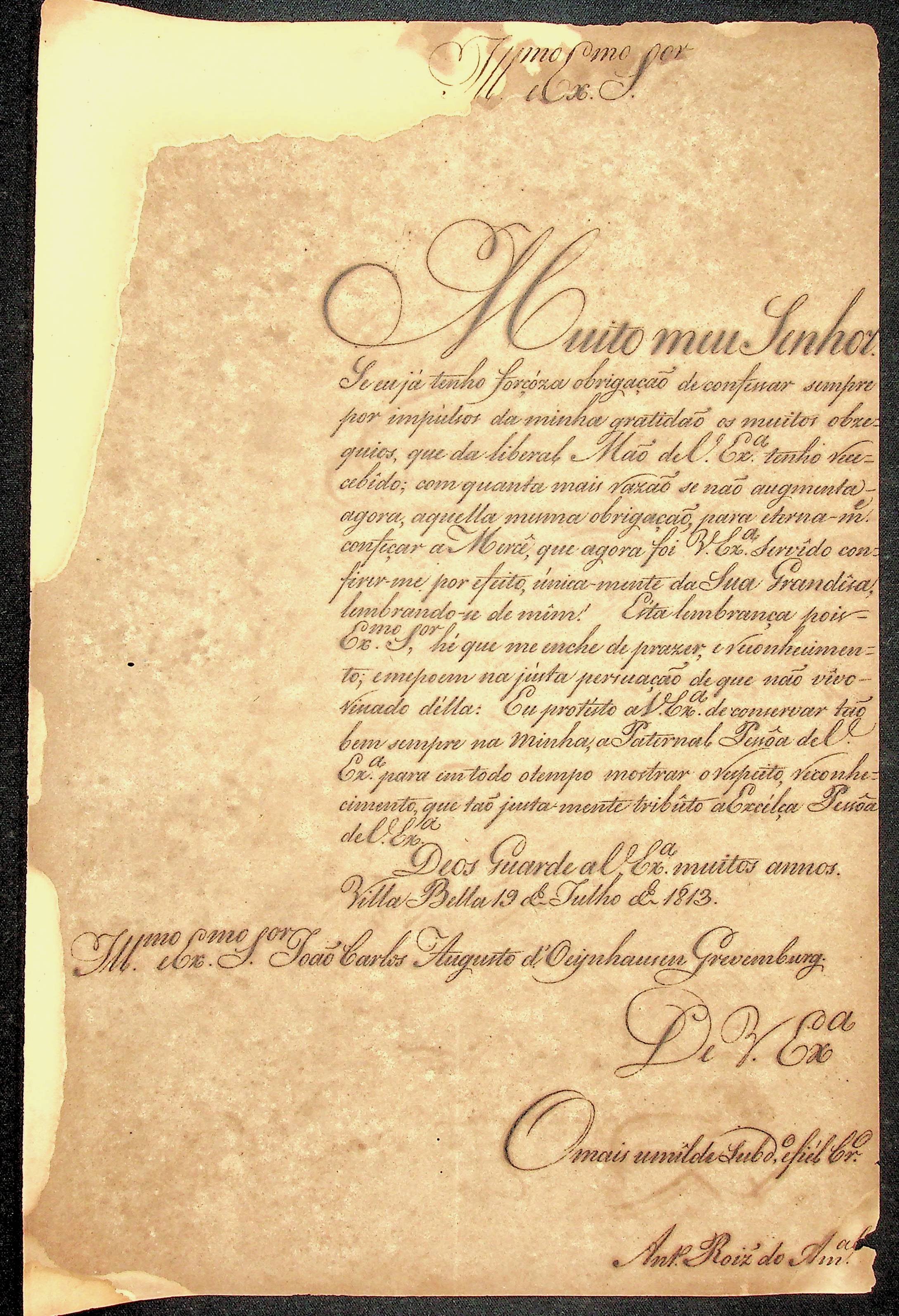 CARTA de Antônio Rodrigues do Amaral ao [Governador e Capitão-General da Capitania de Mato Grosso] João Carlos Augusto D’Oeynhausen e Gravemberg.