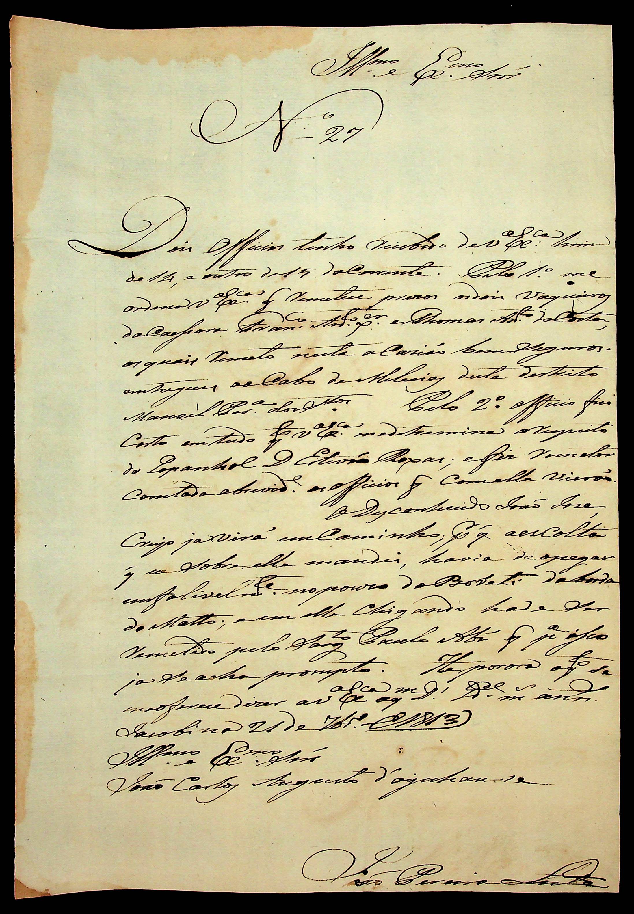 CARTA de João Pereira Leite ao [Governador e Capitão-General da Capitania de Mato Grosso] João Carlos Augusto D’Oeynhausen e Gravemberg.