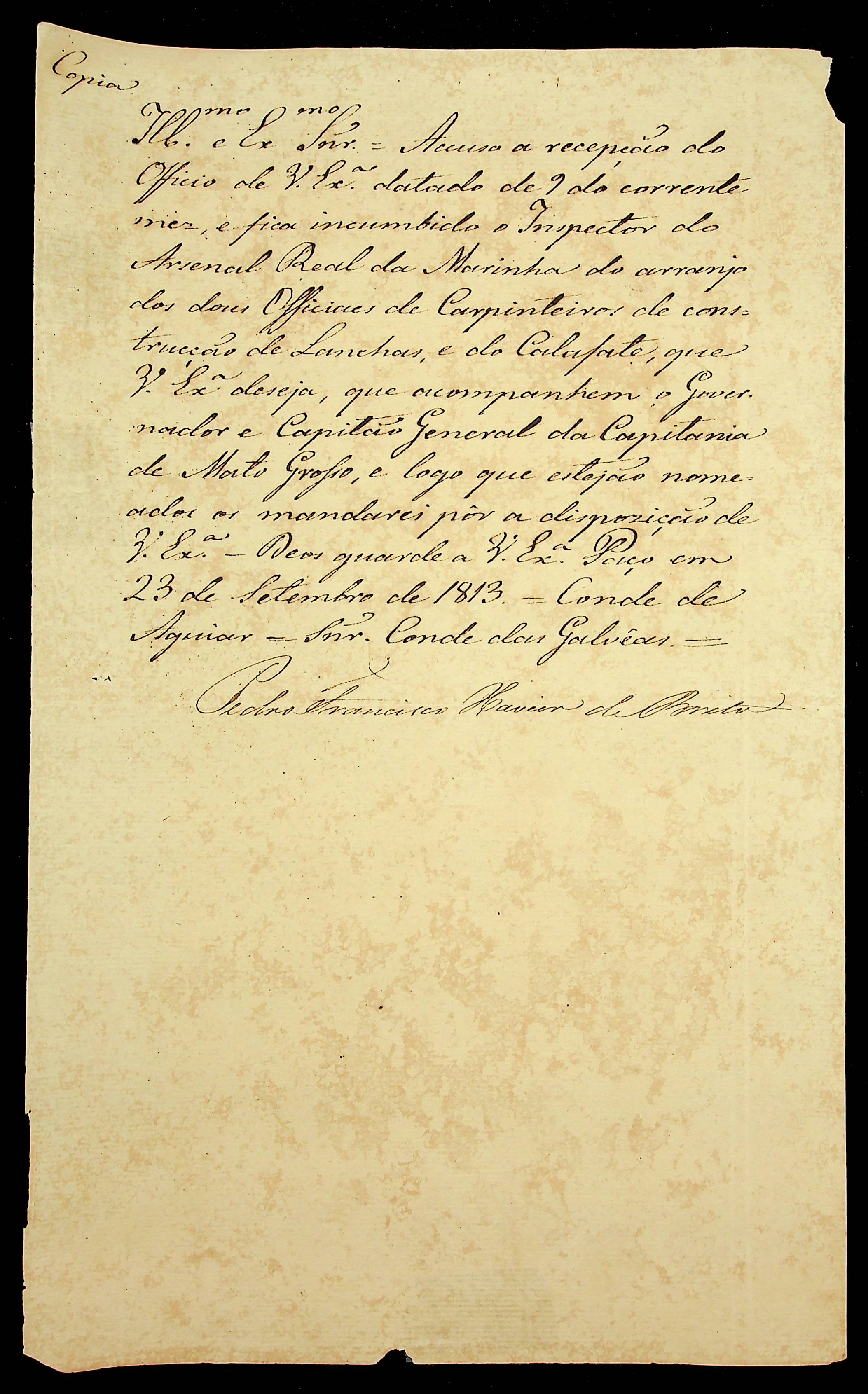 CARTA (cópia) do Conde de Aguiar ao Conde das Galveas.