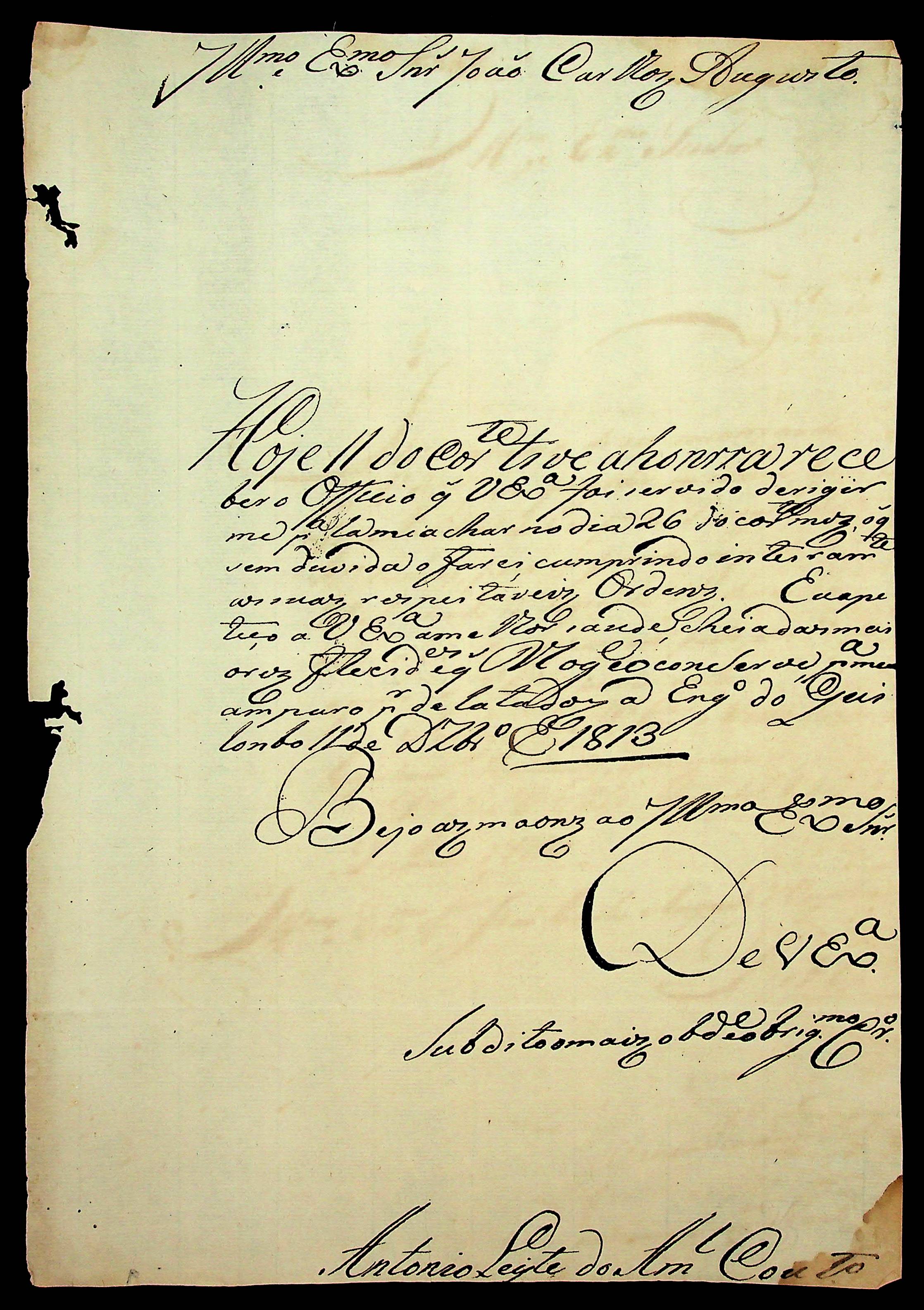 CARTA de Antônio Leite do Amaral Couto ao [Governador e Capitão-General da Capitania de Mato Grosso] João Carlos Augusto D’Oeynhausen e Gravemberg.
