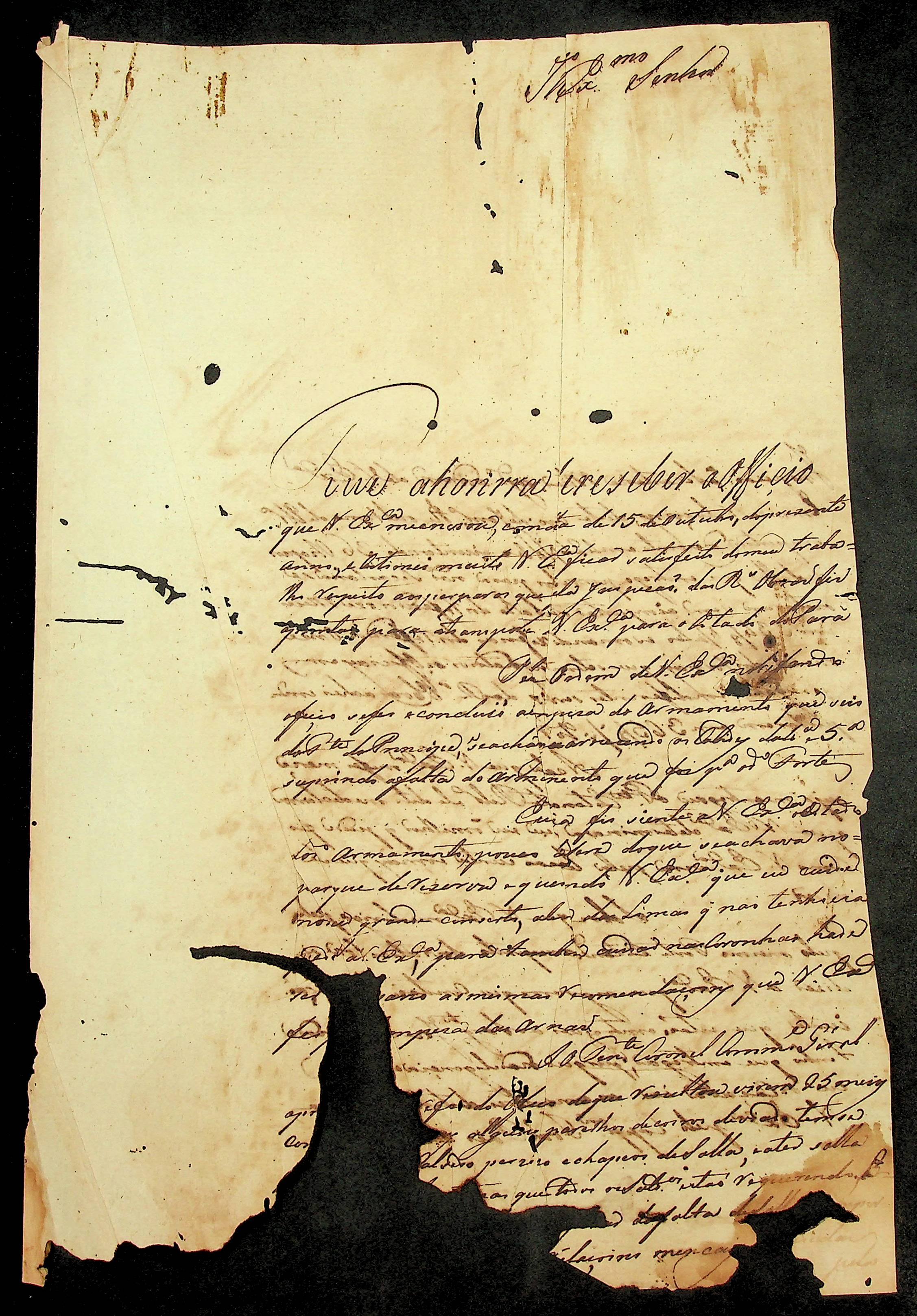 CARTA de José [...] ao [Governador e Capitão-General da Capitania de Mato Grosso] João Carlos Augusto D’ Oeynhausen e Gravemberg.