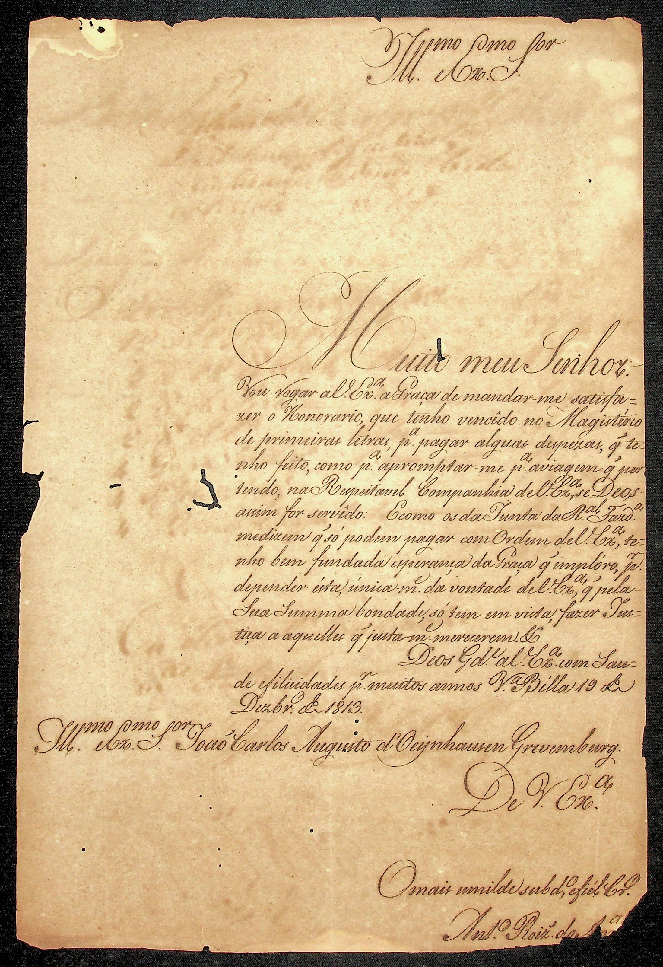 CARTA de Antônio Rodrigues do Amaral ao [Governador e Capitão-General da Capitania de Mato Grosso] João Carlos Augusto D’Oeynhausen e Gravemberg.