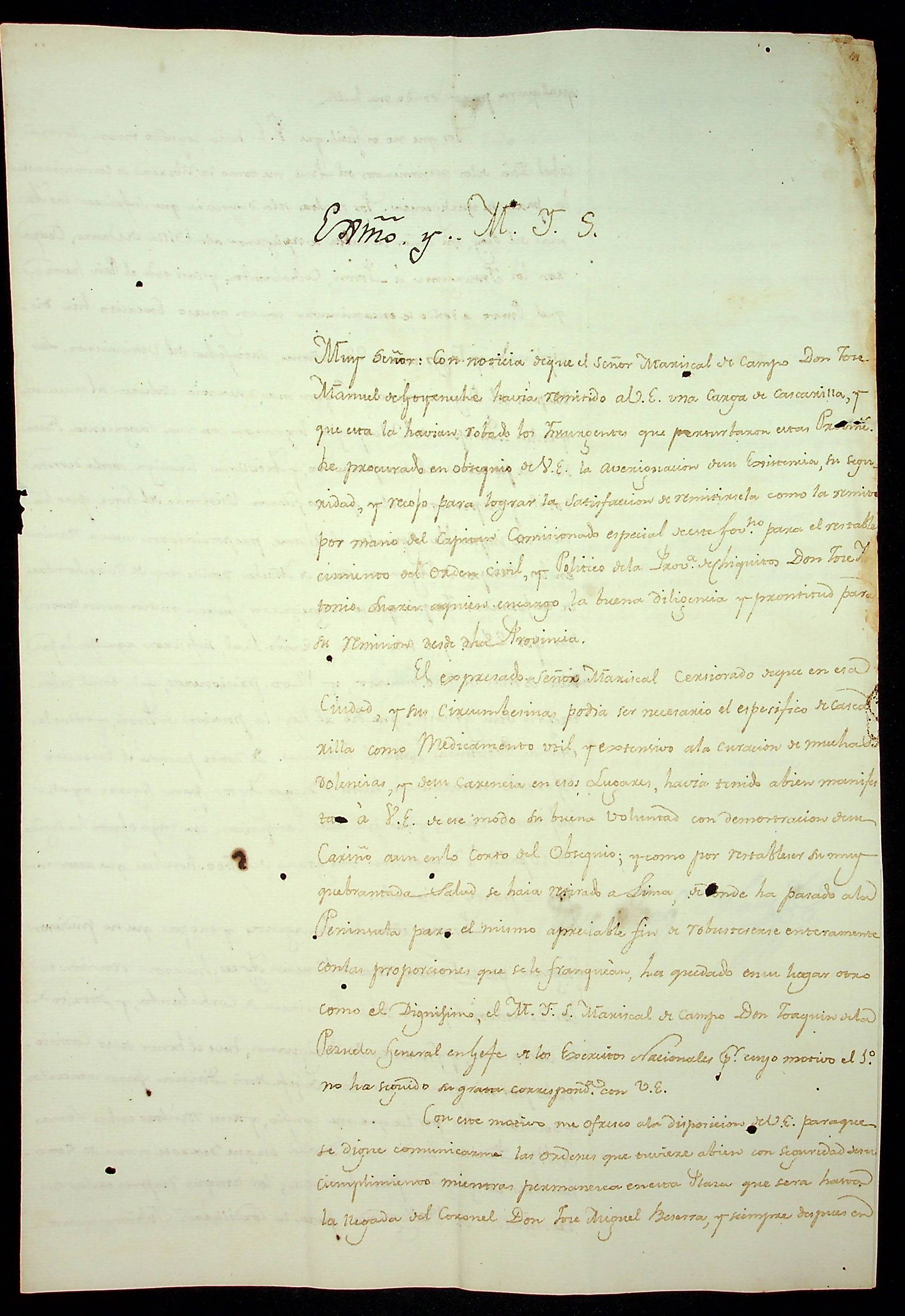 CARTA de José Joaquim Blanco ao [Governador e Capitão-General da Capitania de Mato Grosso João Carlos Augusto D’Oeynhausen e Gravemberg].