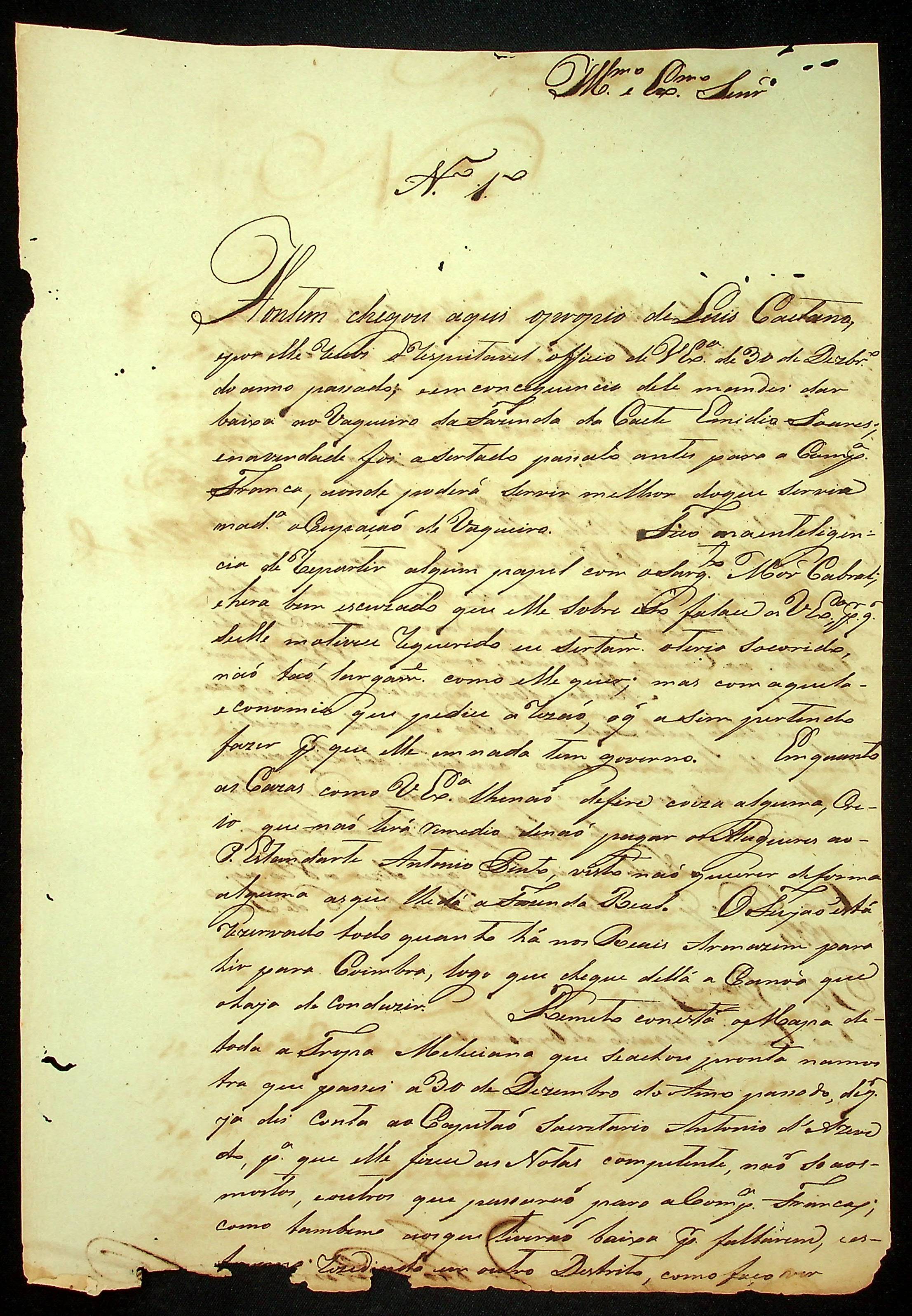 CARTA de João Pereira Leite ao [Governador e Capitão-General da Capitania de Mato Grosso] João Carlos Augusto D’Oeynhausen e Gravemberg.