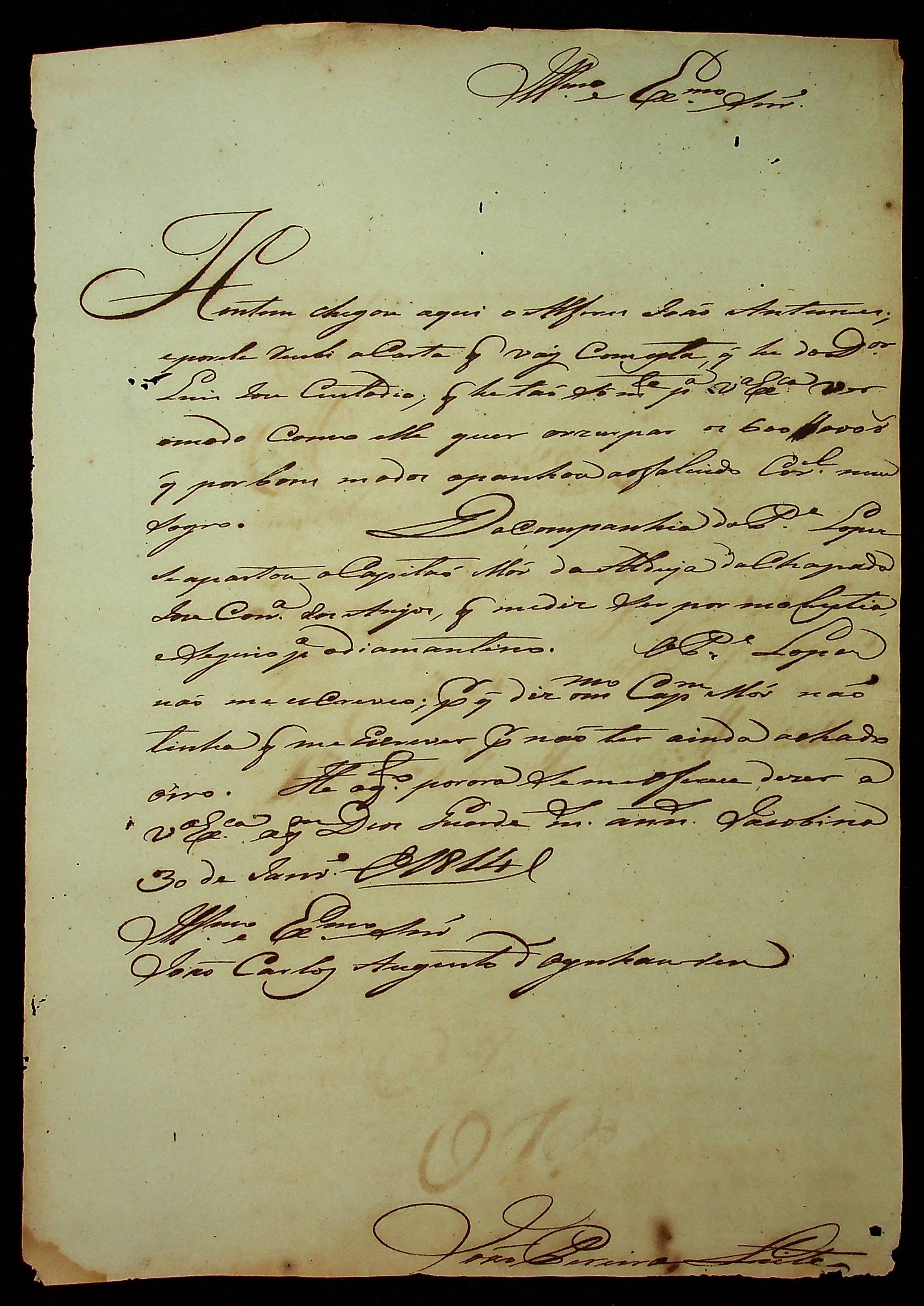 CARTA de João Pereira Leite ao [Governador e Capitão-General da Capitania de Mato Grosso] João Carlos Augusto D’Oeynhausen e Gravemberg.