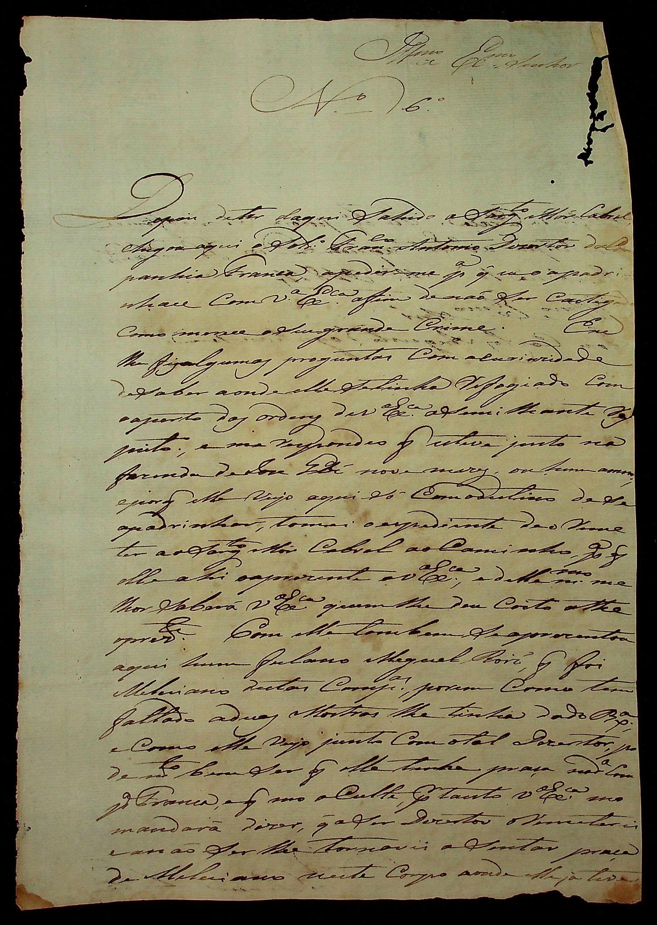 CARTA de João Pereira Leite ao [Governador e Capitão-General da Capitania de Mato Grosso] João Carlos Augusto D’Oeynhausen e Gravemberg.