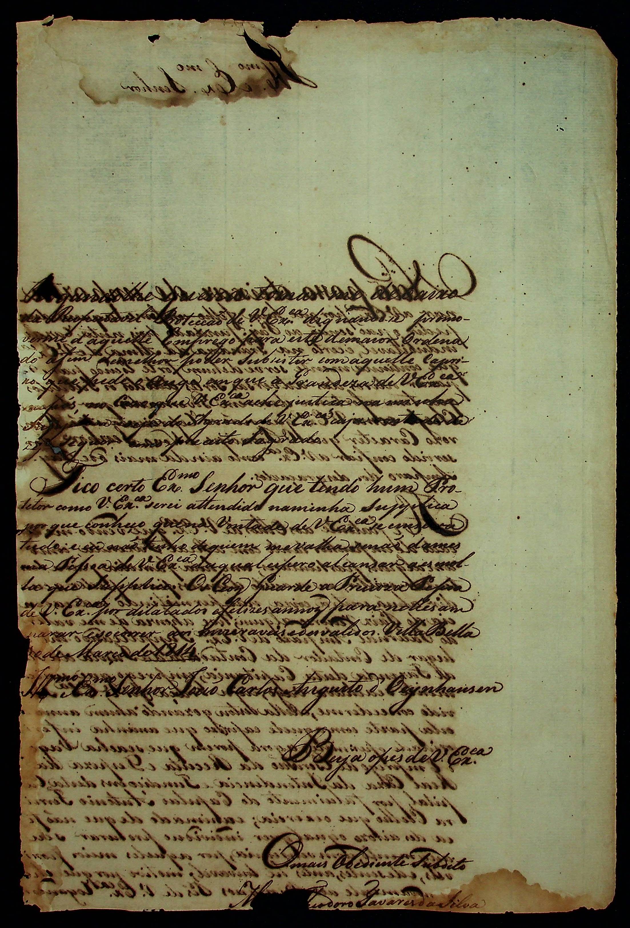 CARTA de [Manoel] Teodoro Tavares da Silva ao [Governador e Capitão-General da Capitania de Mato Grosso] João Carlos Augusto D’Oeynhausen e Gravemberg.