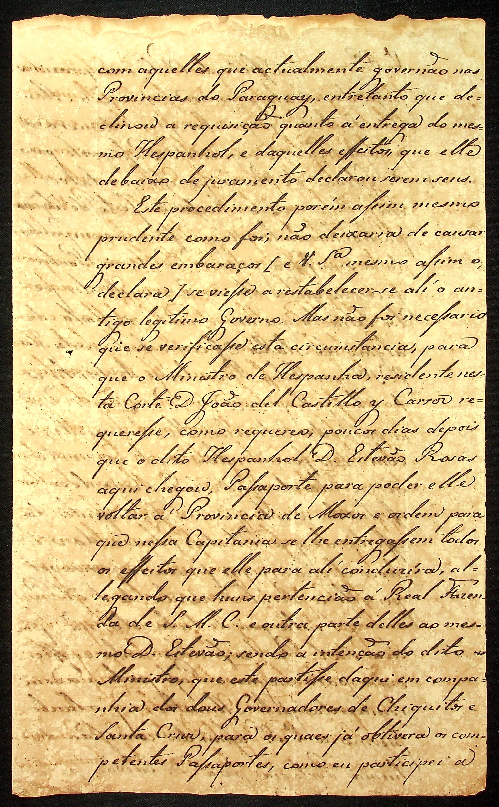 CARTA do Marques de Aguiar ao [Governador e Capitão-General da Capitania de Mato Grosso] João Carlos Augusto D’Oeynhausen e Gravemberg.
