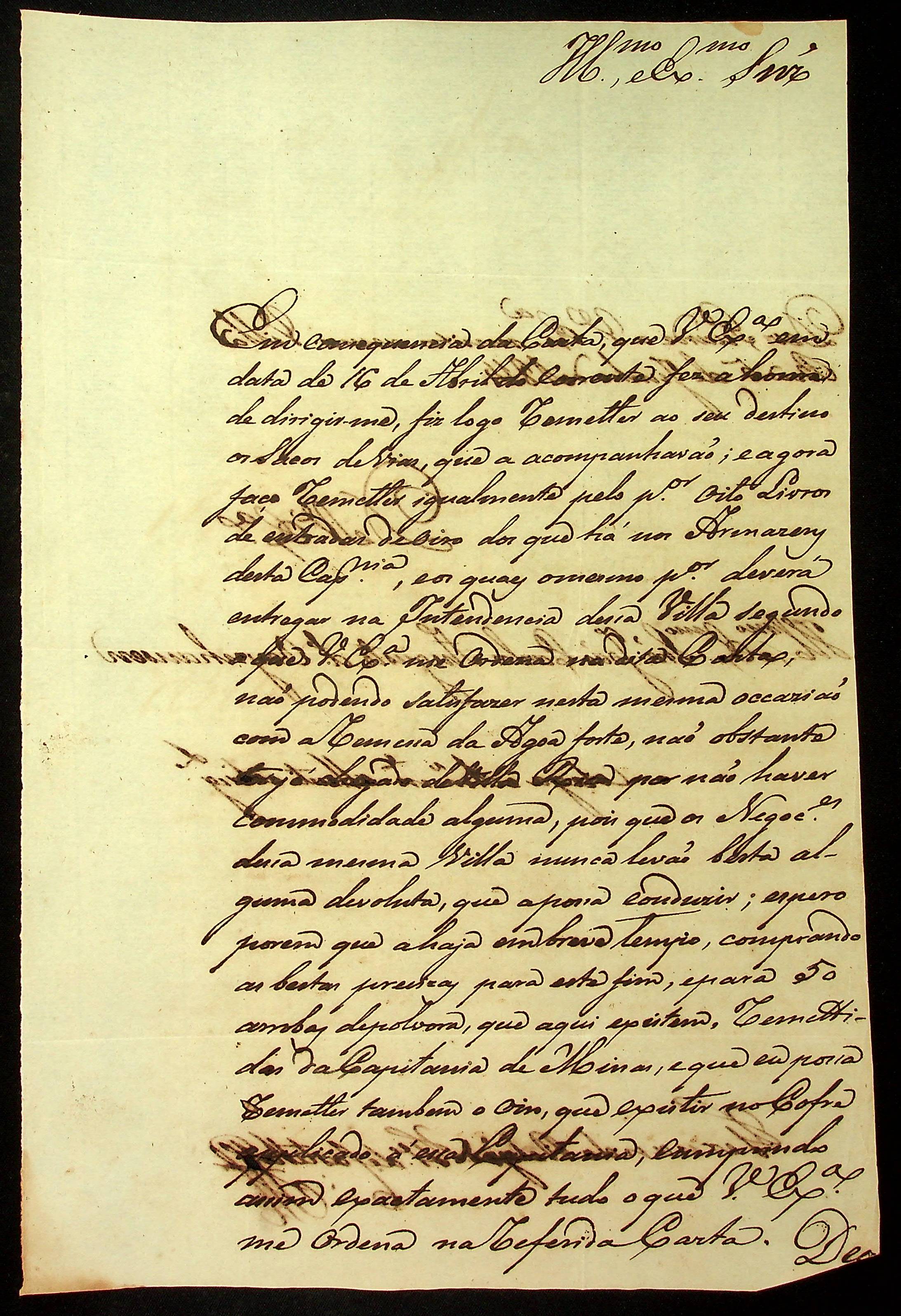 CARTA do [Governador e Capitão-General da Capitania de Goiás] Fernando Delgado Freire de Castilho ao [Governador e Capitão-General da Capitania de Mato Grosso] João Carlos Augusto D’Oeynhausen e Gravemberg.