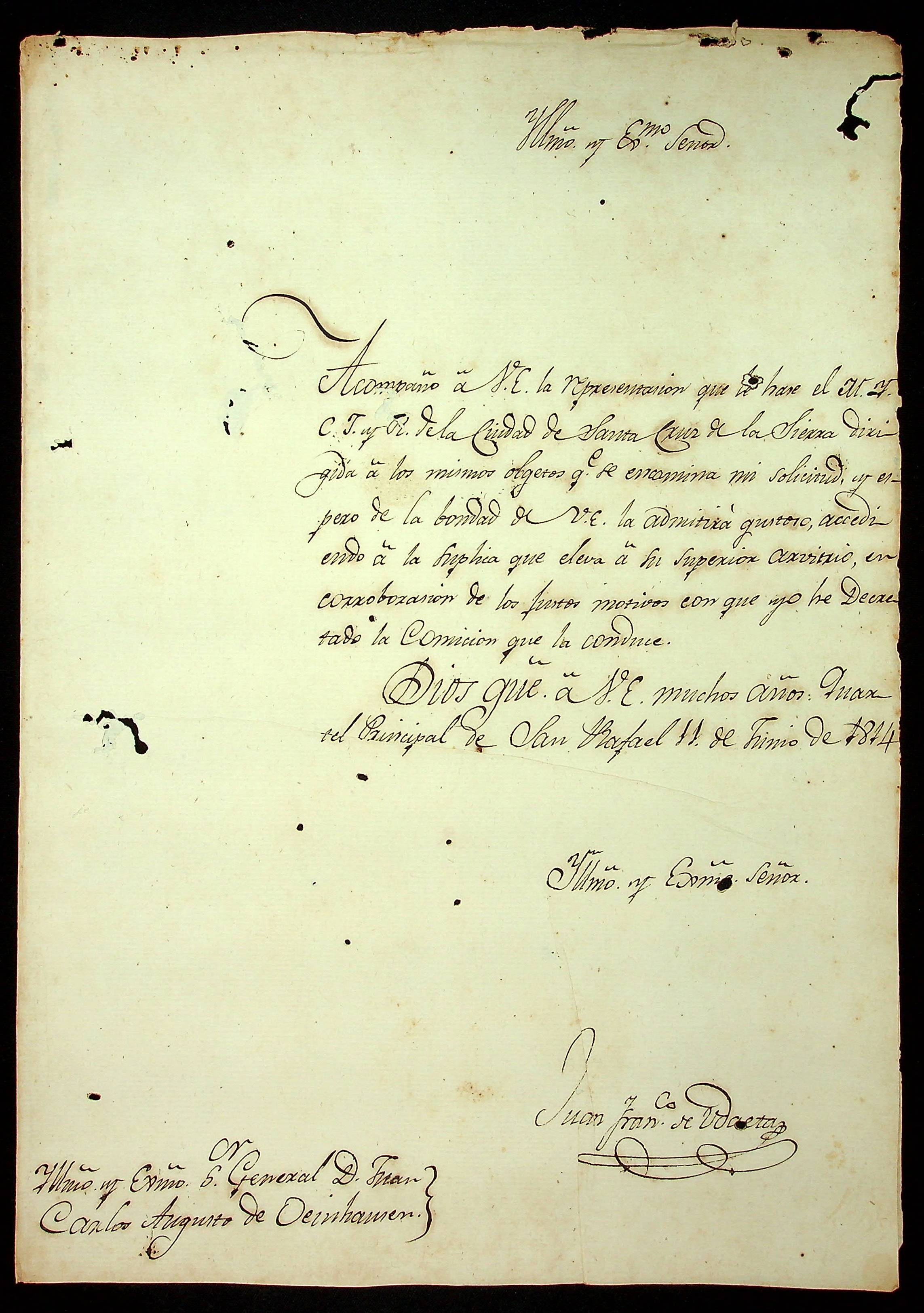 CARTA de Juan Francisco [...] ao [Governador e Capitão-General da Capitania de Mato Grosso] João Carlos Augusto D’Oeynhausen e Gravemberg.