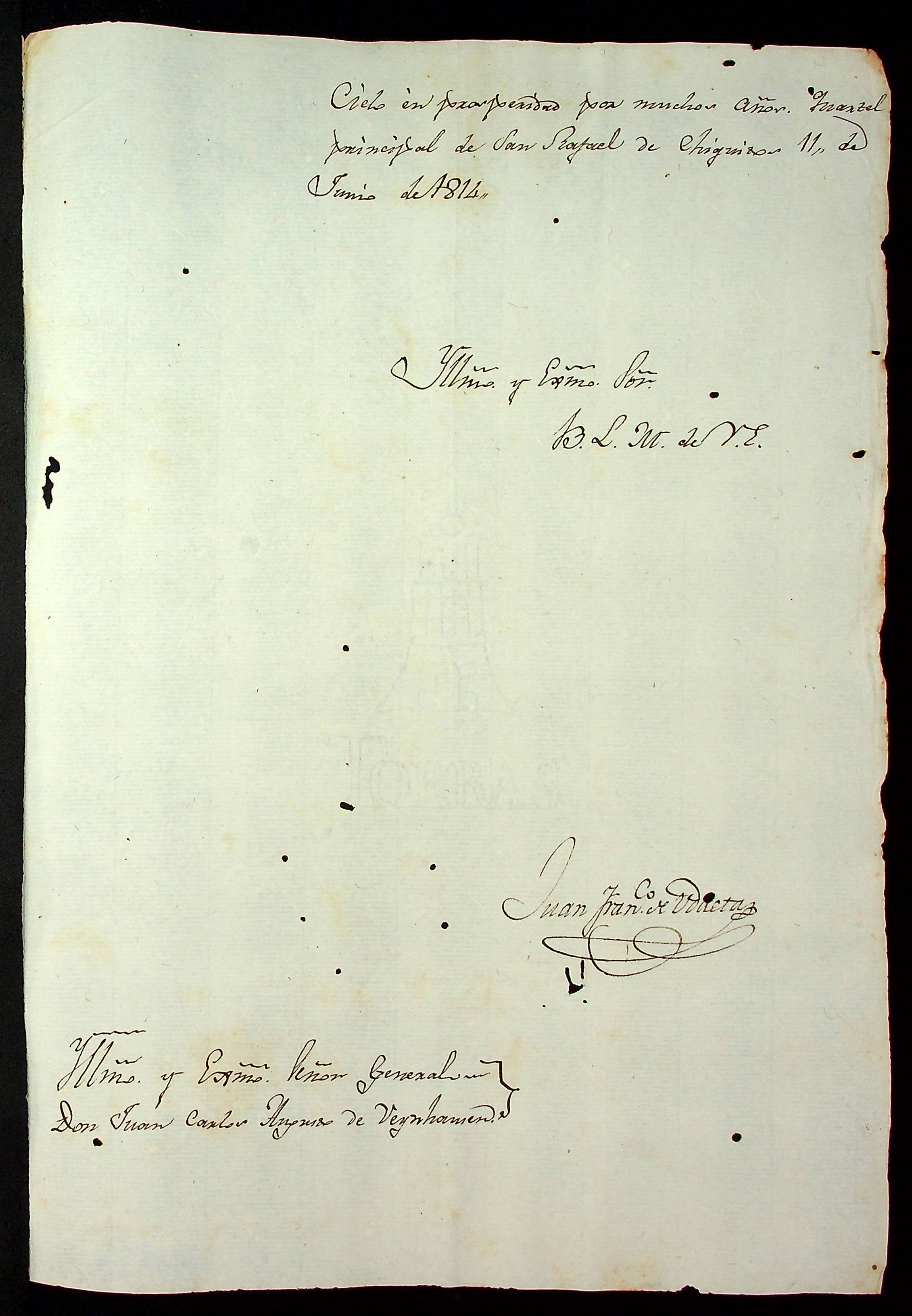 CARTA de Juan Francisco de [...] ao [Governador e Capitão-General da Capitania de Mato Grosso] João Carlos Augusto D’Oeynhausen e Gravemberg.