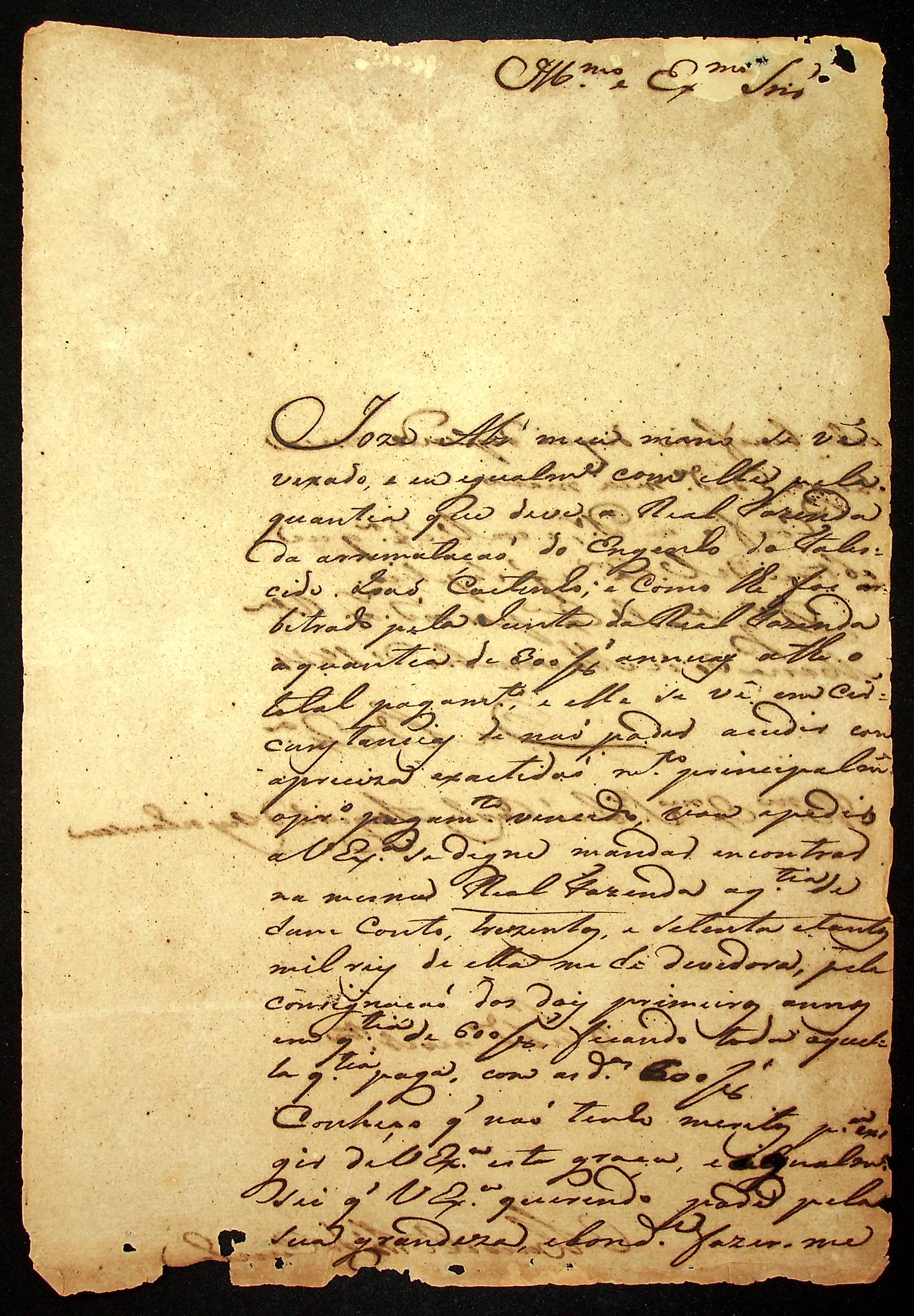 CARTA de Manoel Alvares da Cunha ao [Governador e Capitão-General da Capitania de Mato Grosso] João Carlos Augusto D’Oeynhausen e Gravemberg.