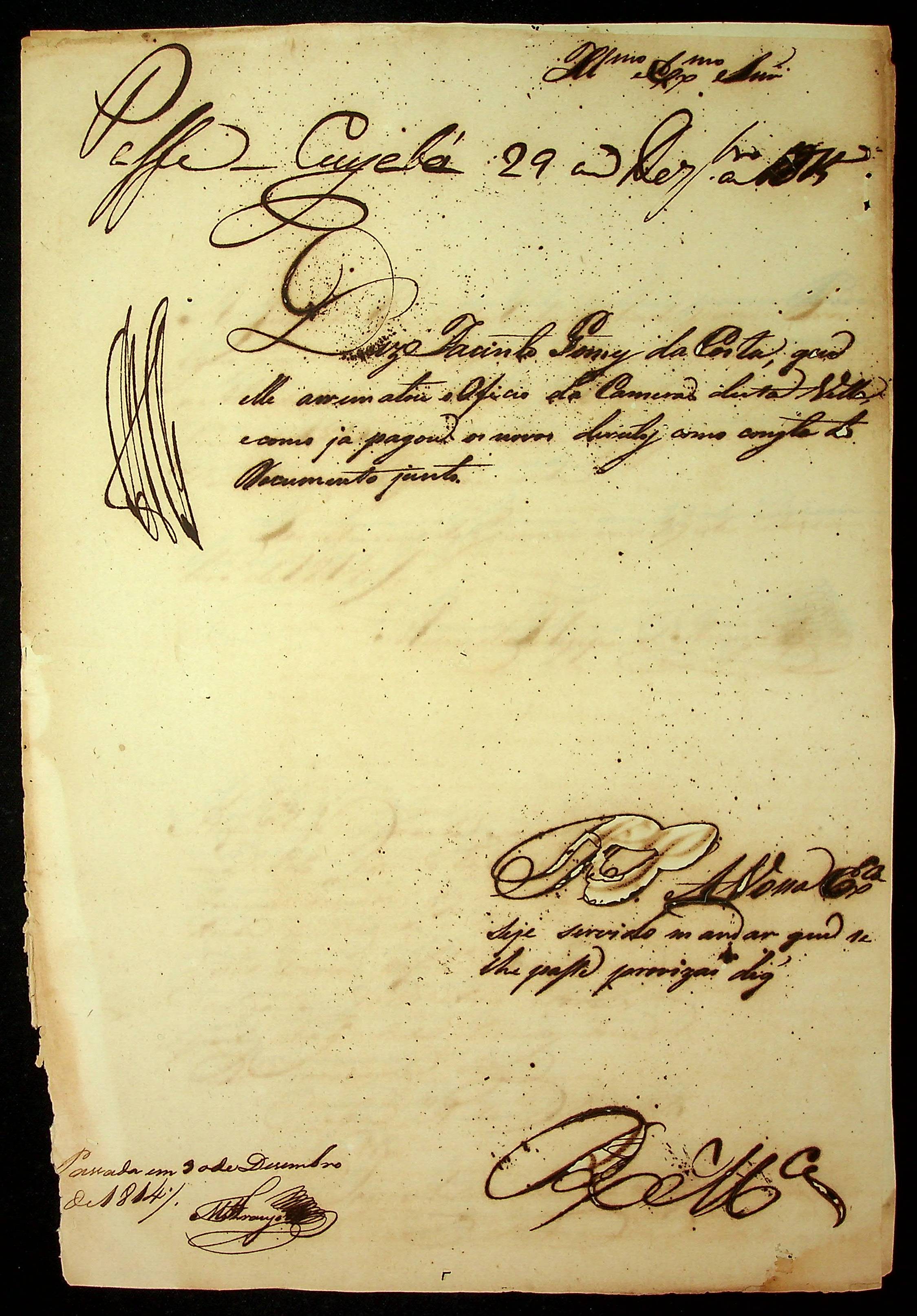 CARTA de Jacinto Gomes da Costa ao [Governador e Capitão-General da Capitania de Mato Grosso João Carlos Augusto D´Oeynhausen e Gravemberg].
