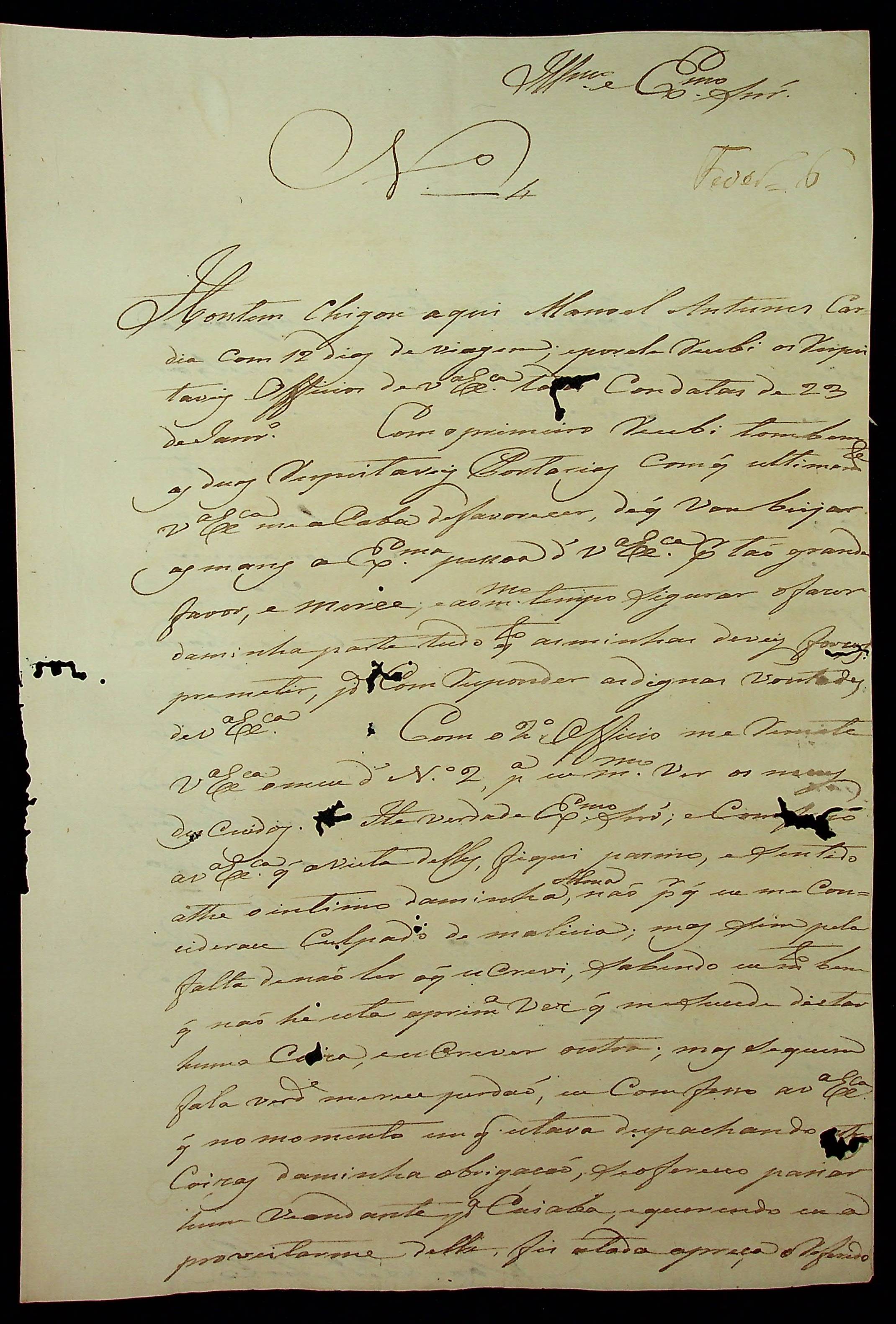 CARTA de João Pereira Leite ao [Governador e Capitão-General da Capitania de Mato Grosso] João Carlos Augusto D’Oeynhausen e Gravemberg.