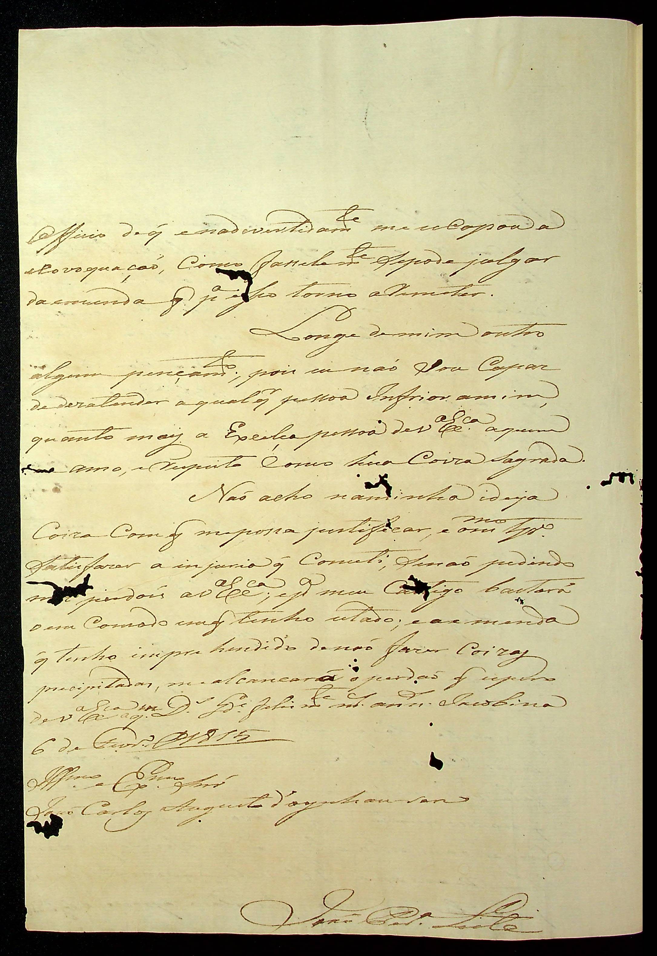CARTA de João Pereira Leite ao [Governador e Capitão-General da Capitania de Mato Grosso] João Carlos Augusto D’Oeynhausen e Gravemberg.