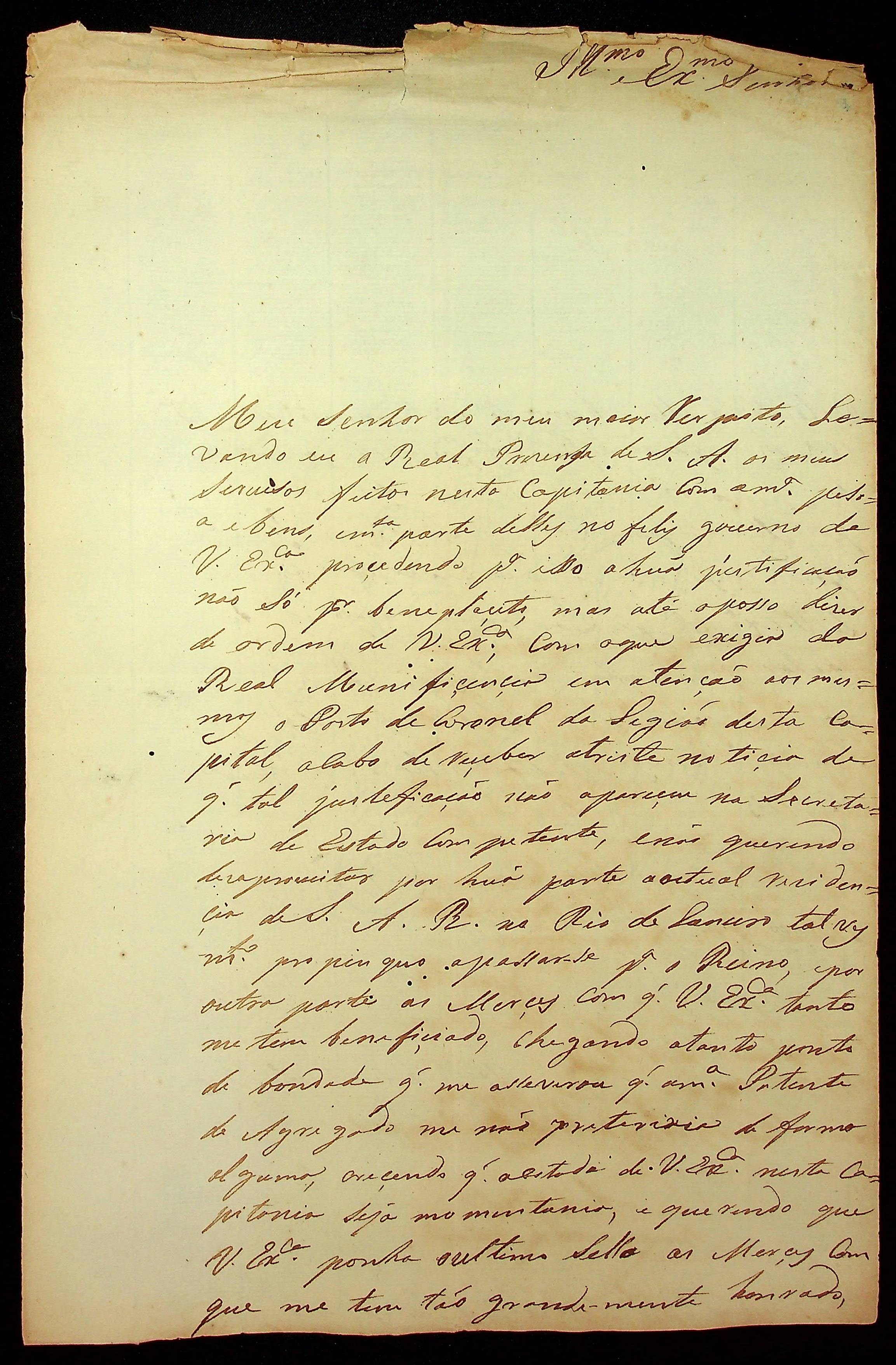 CARTA de Antônio Joaquim de Vasconcelos Pinto ao [Governador e Capitão-General da Capitania de Mato Grosso] João Carlos Augusto D’Oeynhausen e Gravemberg.