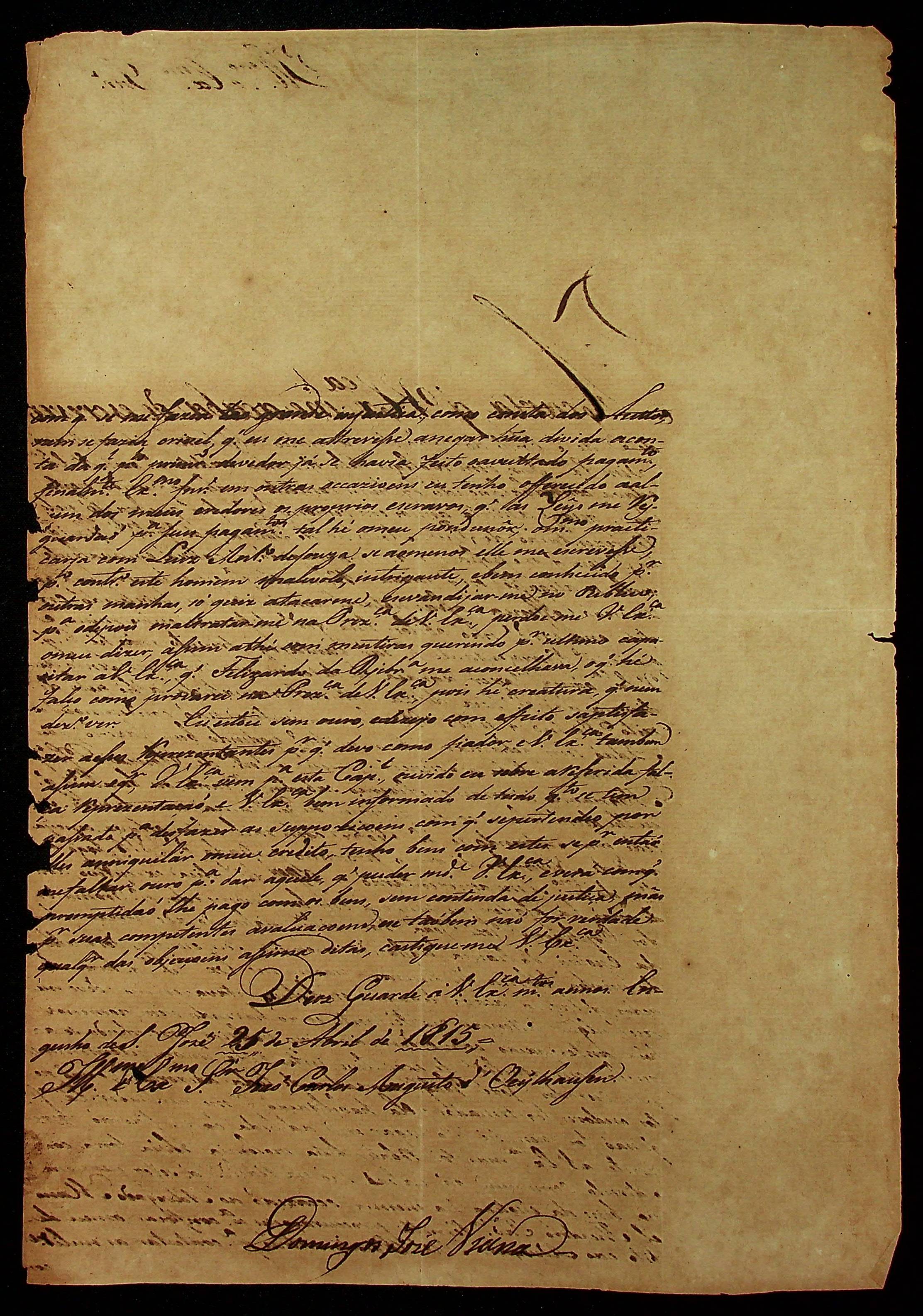 CARTA de Domingos José Viana ao [Governador e Capitão-General da Capitania de Mato Grosso] João Carlos Augusto D’Oeynhausen e Gravemberg.