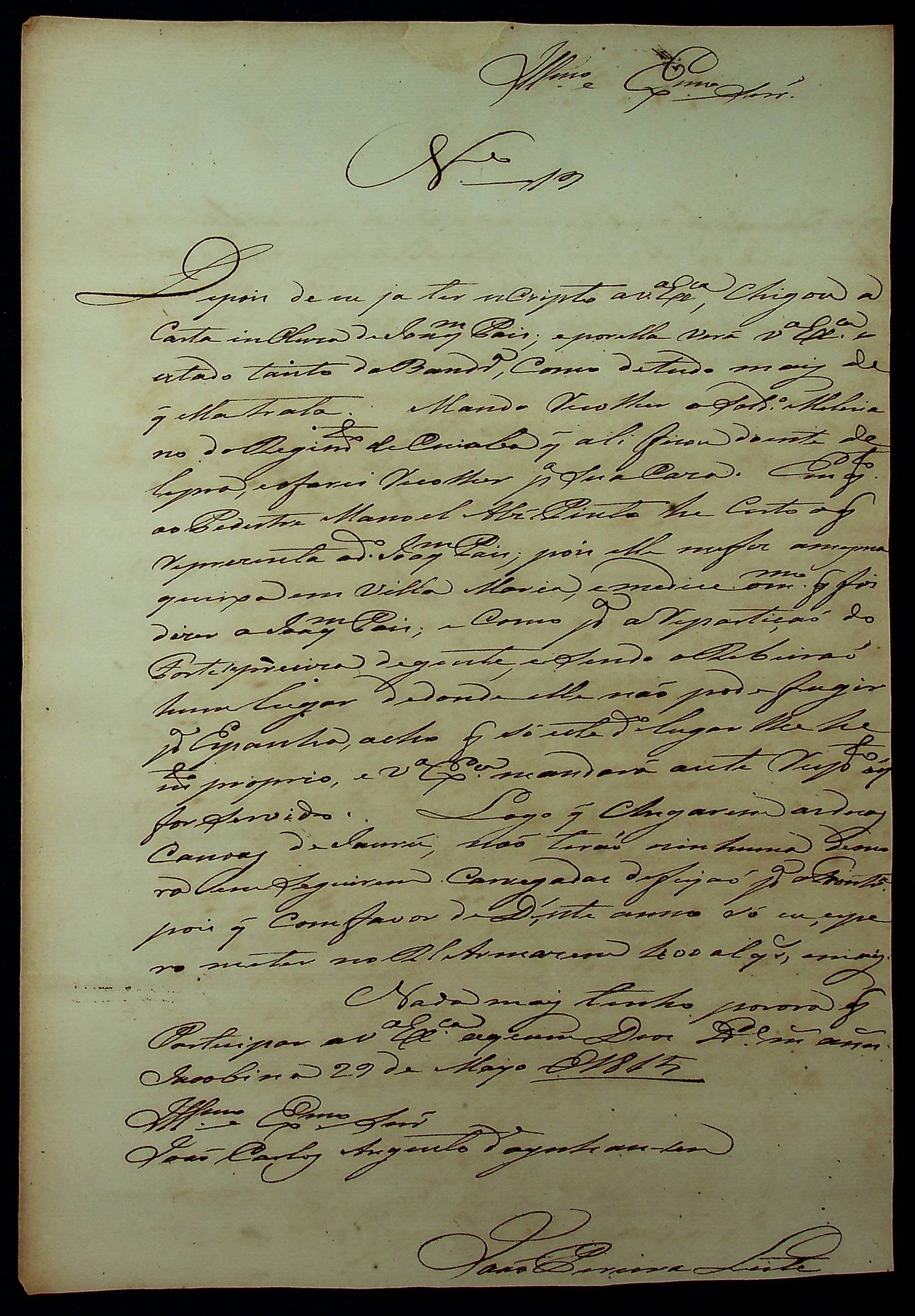 CARTA de João Pereira Leite ao [Governador e Capitão-General da Capitania de Mato Grosso] João Carlos Augusto D’Oeynhausen e Gravemberg.