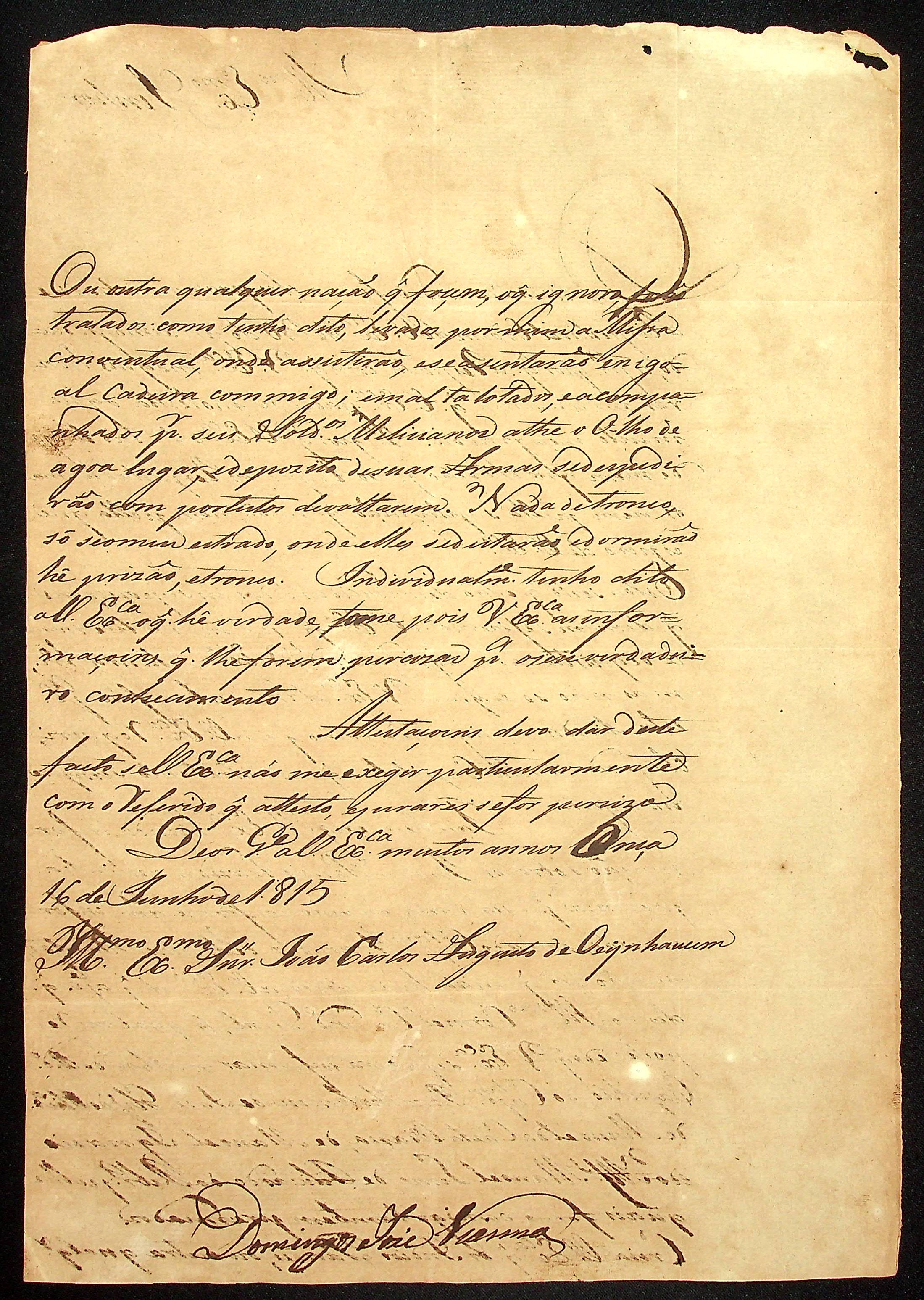 CARTA de Domingos José Viana ao [Governador e Capitão-General da Capitania de Mato Grosso] João Carlos Augusto D’Oeynhausen e Gravemberg..