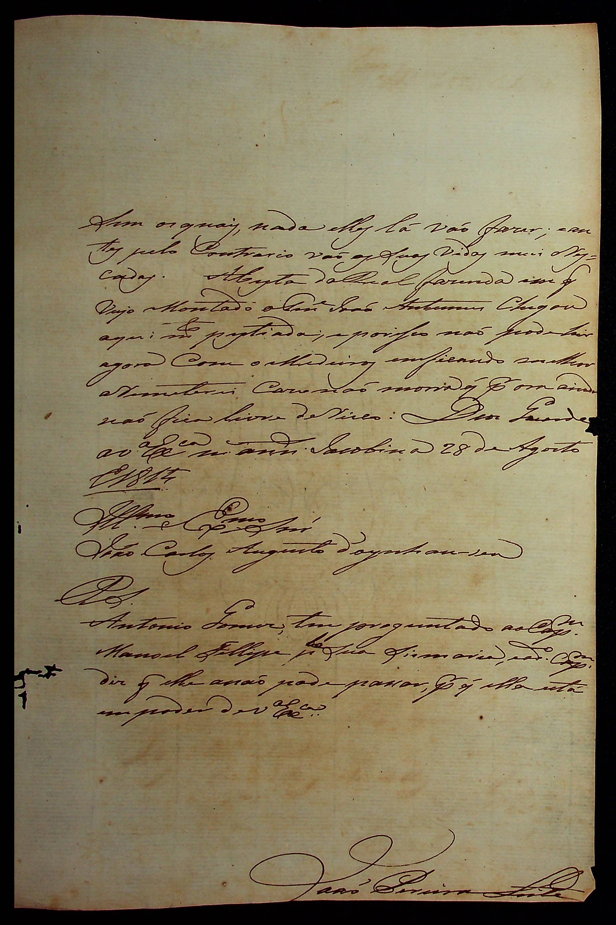 CARTA de João Pereira Leite ao [Governador e Capitão-General da Capitania de Mato Grosso] João Carlos Augusto D’Oeynhausen e Gravemberg.