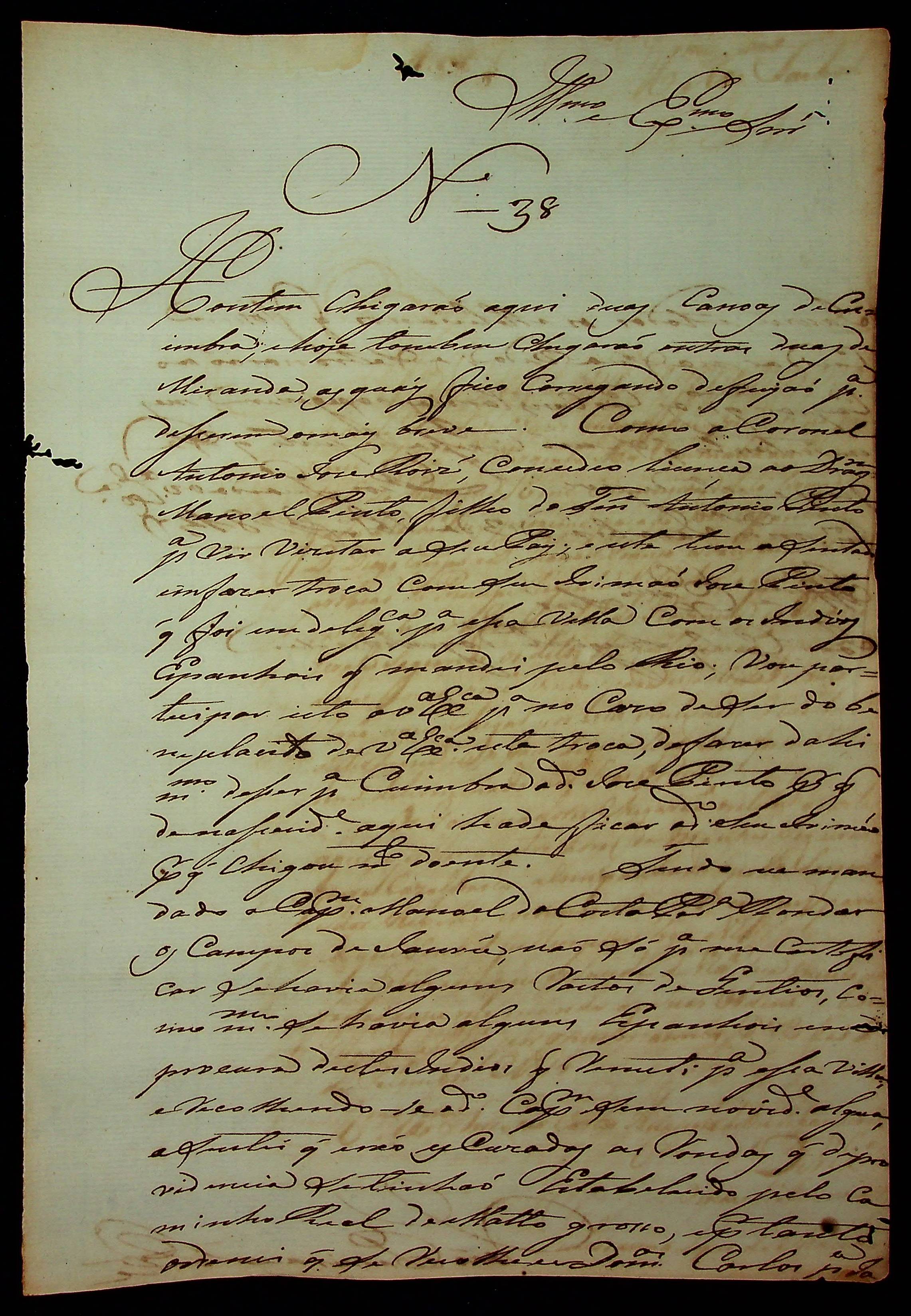 CARTA de João Pereira Leite ao [Governador e Capitão-General da Capitania de Mato Grosso] João Carlos Augusto D’Oeynhausen e Gravemberg.