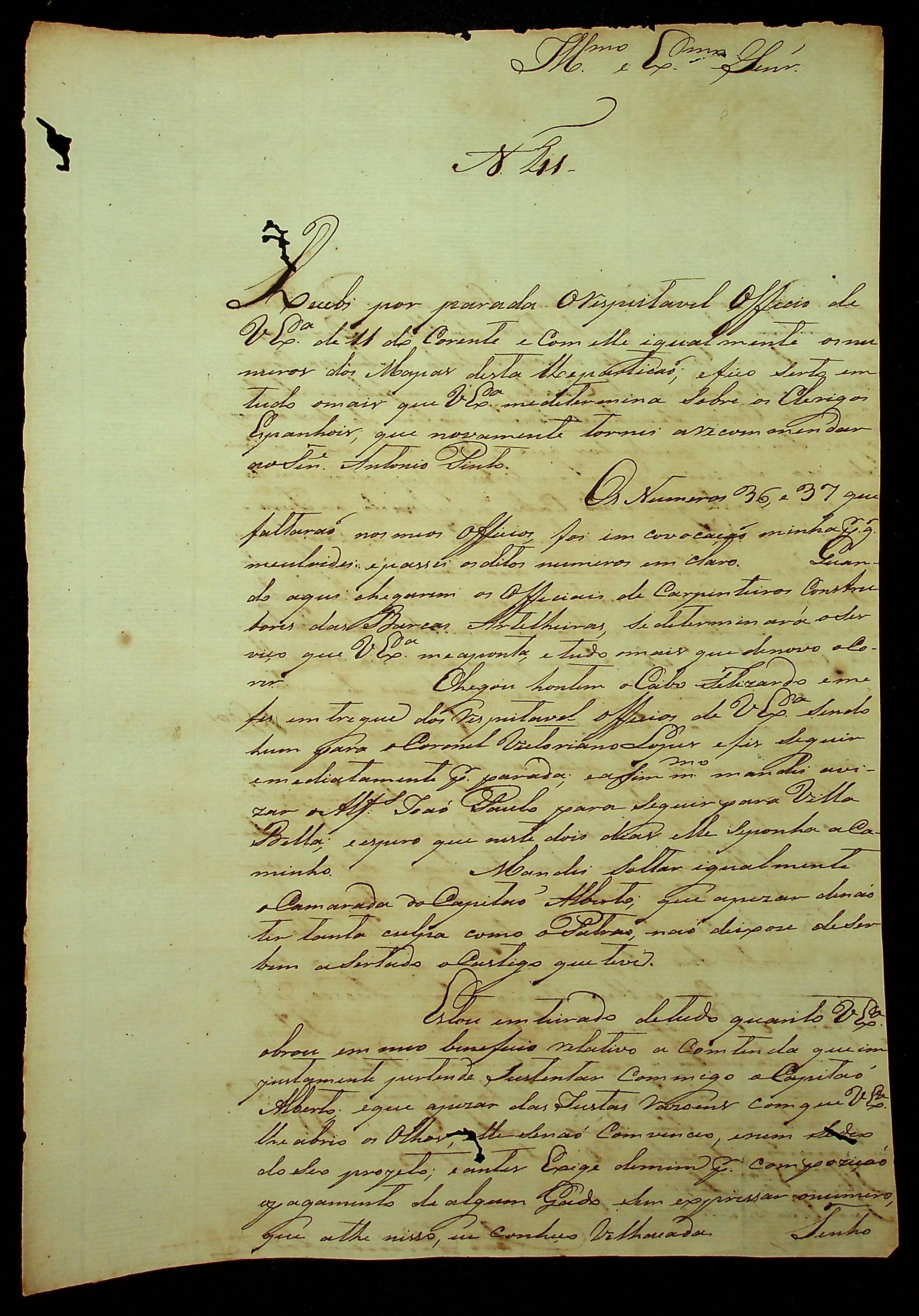 CARTA de João Pereira Leite ao [Governador e Capitão-General da Capitania de Mato Grosso] João Carlos Augusto D’Oeynhausen e Gravemberg.