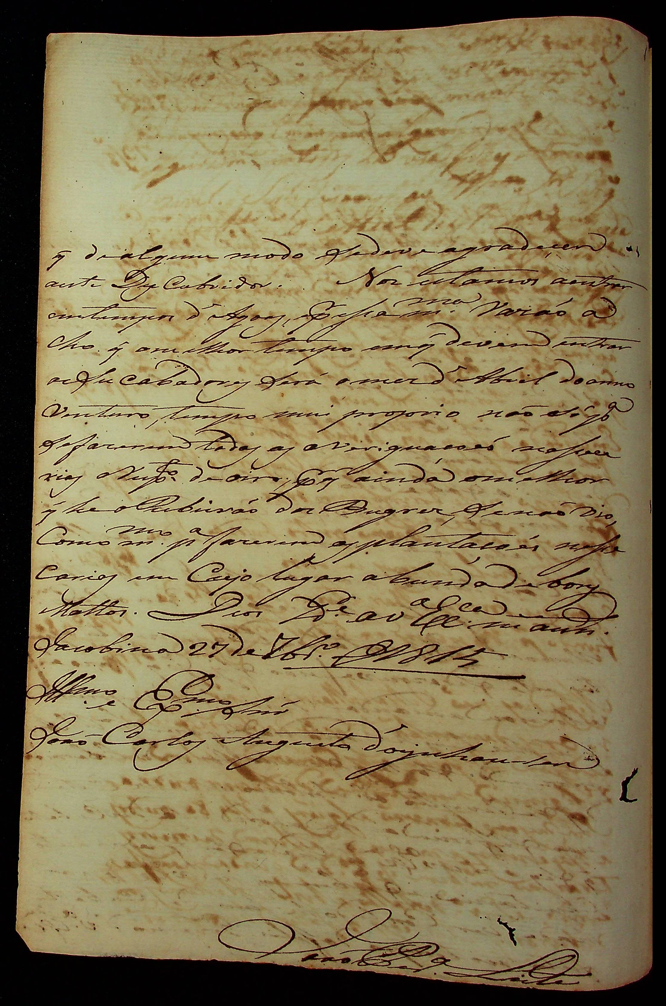CARTA de João Pereira Leite ao [Governador e Capitão-General da Capitania de Mato Grosso] João Carlos Augusto D’Oeynhausen e Gravemberg.
