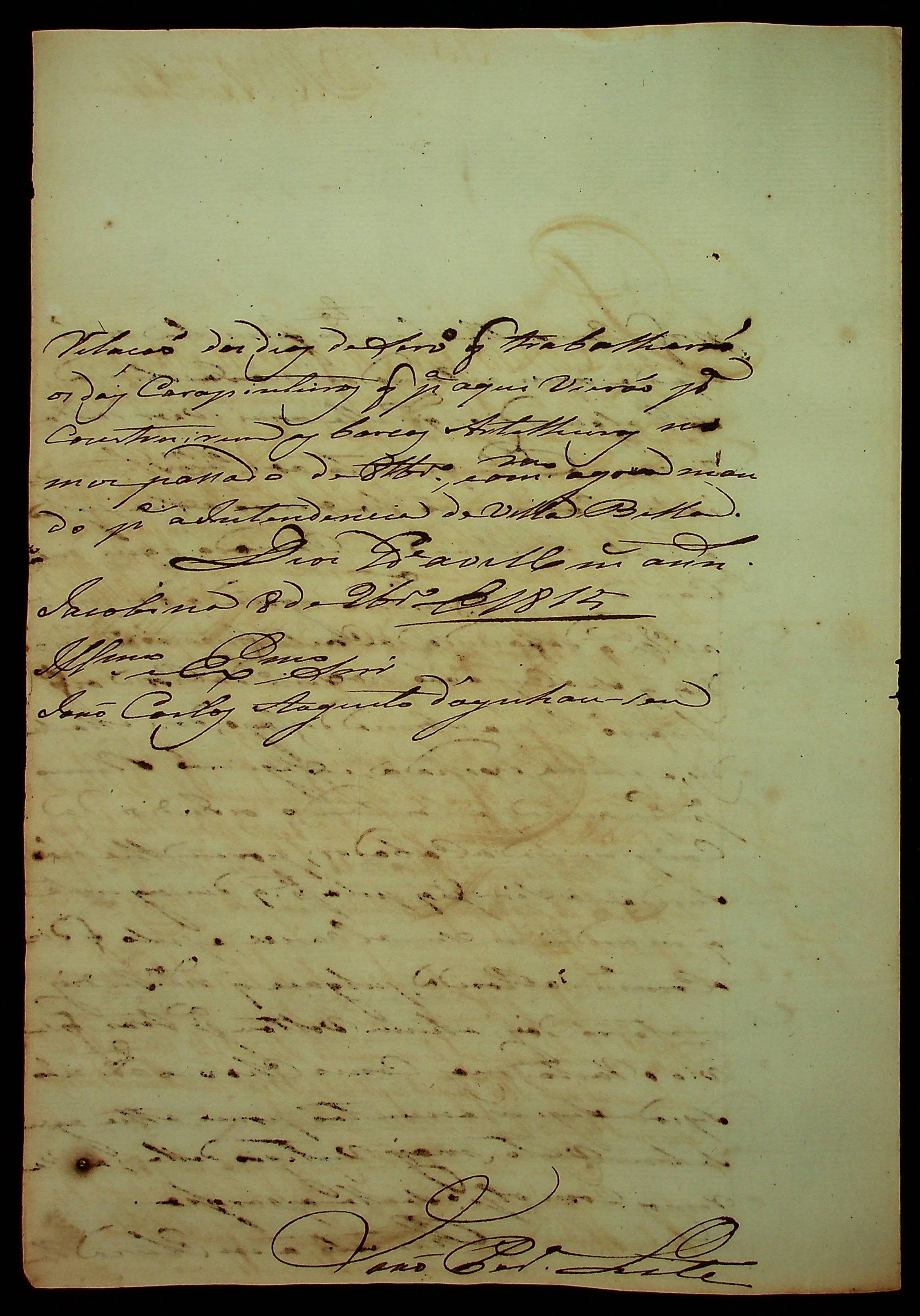 CARTA de João Pereira Leite ao [Governador e Capitão-General da Capitania de Mato Grosso] João Carlos Augusto D’Oeynhausen e Gravemberg.